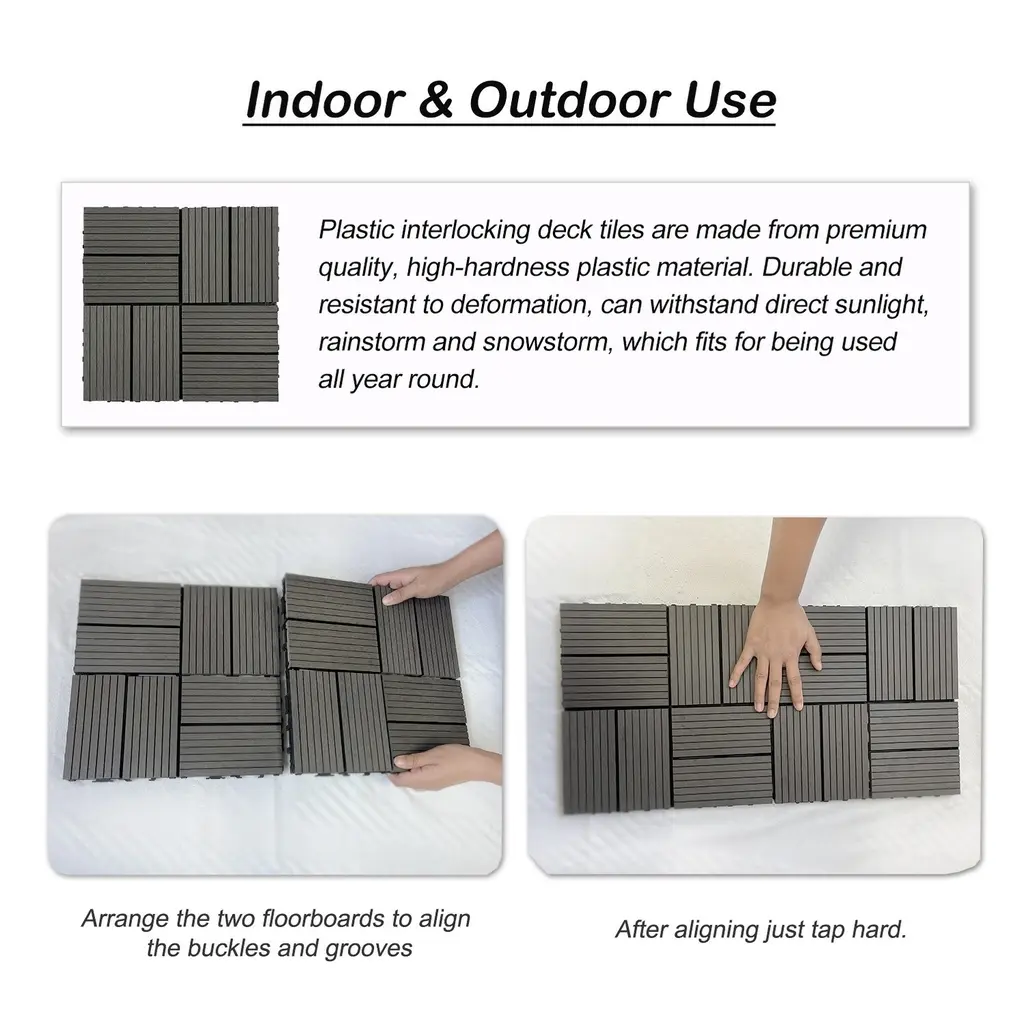 20 Pcs Interlocking Decking Tiles 12x12" Wood Plastic Composite Deck Tiles Indoor Outdoor Waterproof Floor Tile All Weather Use - Grey