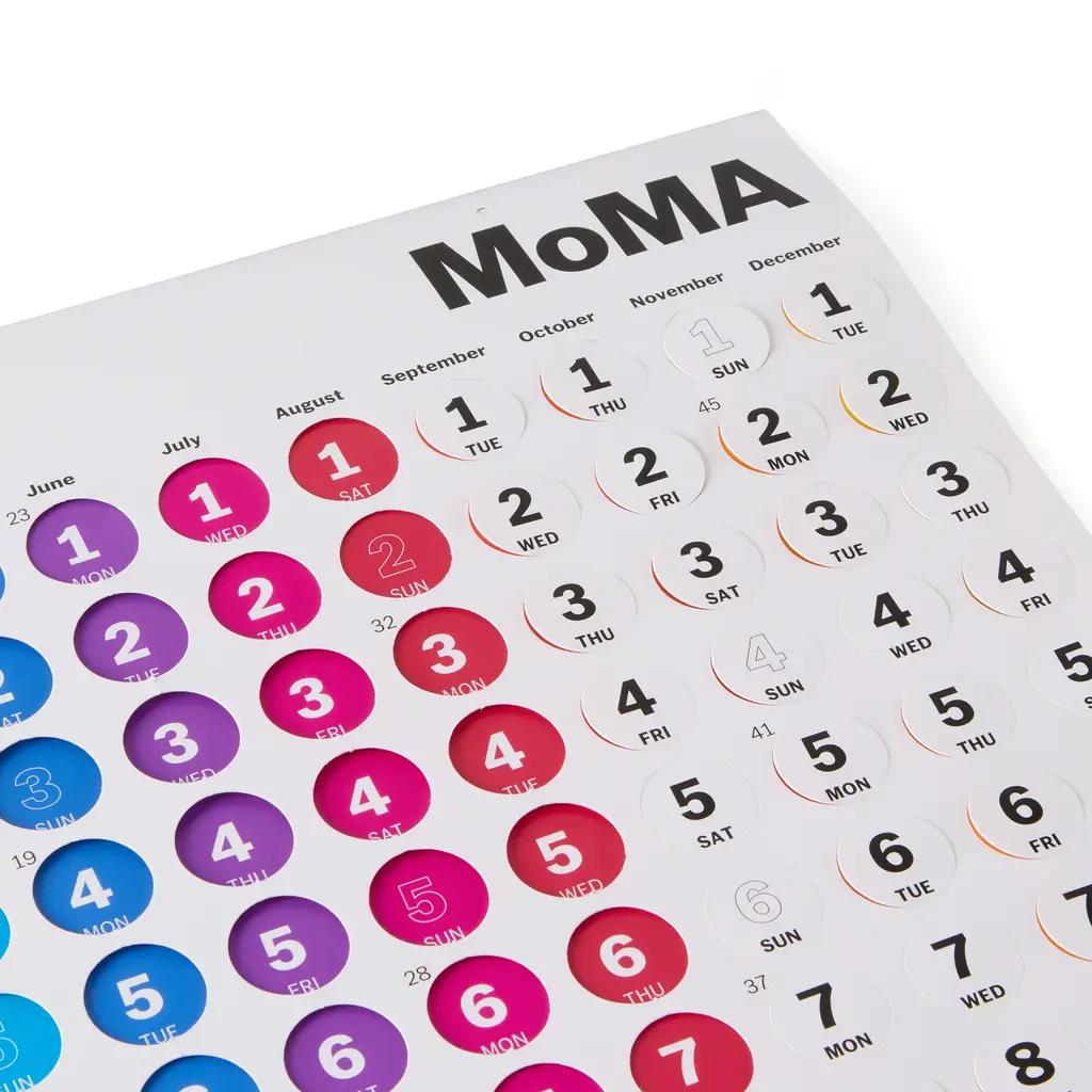 Punch out the day's dot to expose the vivid color underneath with this 2026 edition of the best-selling Jumping Point calendar. Made in Germany. The 2026 Jumping Point Calendar measures 38h x 14”w.