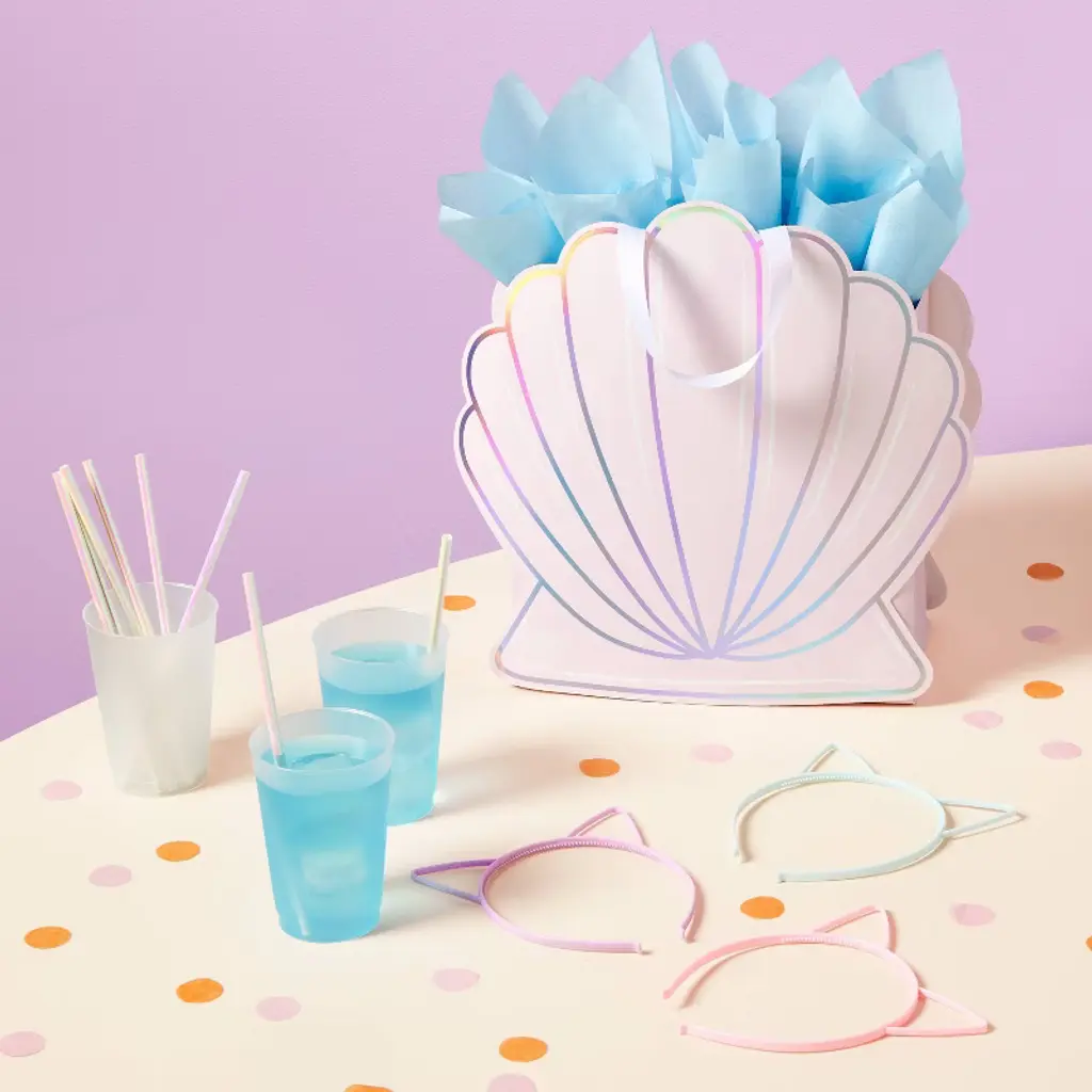 Whether you're hosting a unicorn-themed party or just throwing a festively chic bash, these 20-Count Iridescent Paper Straws from Spritz™ are a must-have addition to your party prep. This pack of paper straws features shiny iridescent designs that start out as light pink at one end and gradually fade into white at the other for a cool look. Simply add one of these pink iridescent straws to any beverage to create a complete and festive party atmosphere while adding convenience to your drinking style.Spritz™: Pops of joy that make the moment™