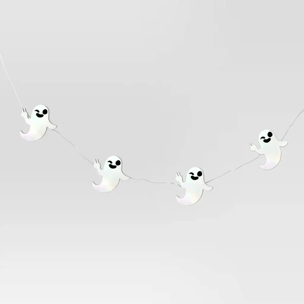 20ct Led 2D Iridescent Plastic Ghost With Peace Sign Halloween Indoor Outdoor Dewdrop String Lights White/silver - Hyde And Eek! Boutique™