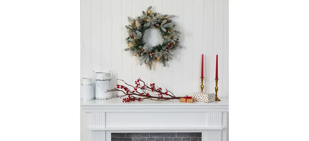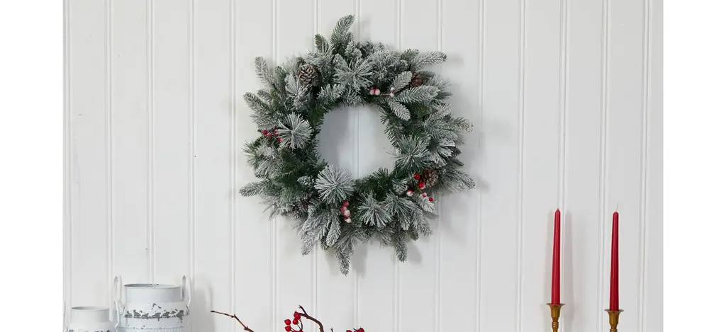 Light up your favorite seasonal accents while adding serious curbside appeal with this artificial Christmas wreath intricately designed from realistic looking seasonal evergreens and finished with a light dusting of faux snow to evoke a winter-wonderland setting. Arriving pre-strung with 50 lights to effortlessly illuminate either a wall or door, this 20" (in circumference) decorative faux wreath makes for an inviting accent and will undoubtedly transform any entrance all throughout the holiday season.