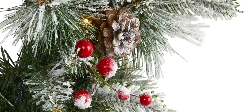 20in. Pre-Lit Flocked Mixed Pine Artificial Christmas Wreath