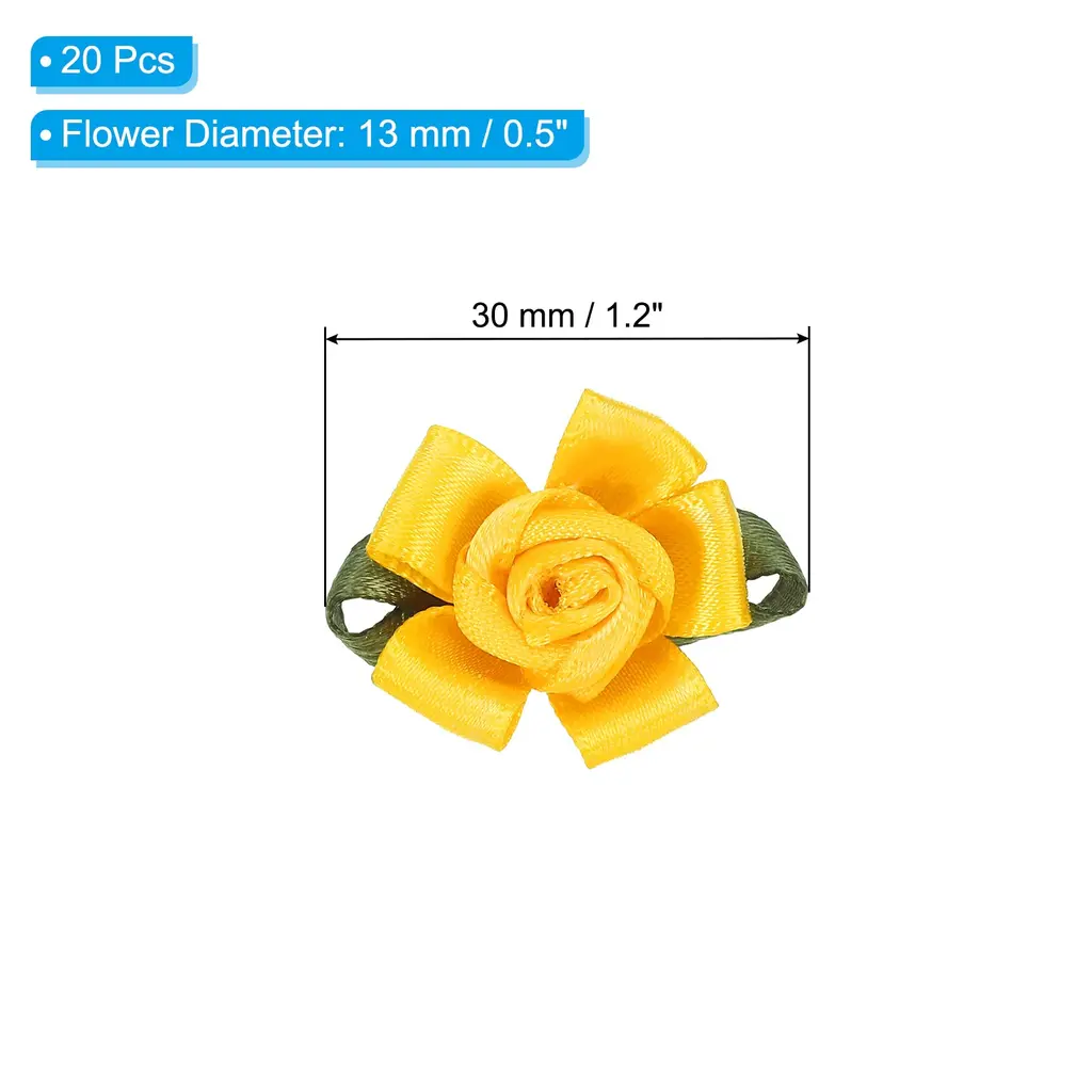 20pcs Mini Satin Ribbon Roses Small Rosettes Fabric Flowers - Red