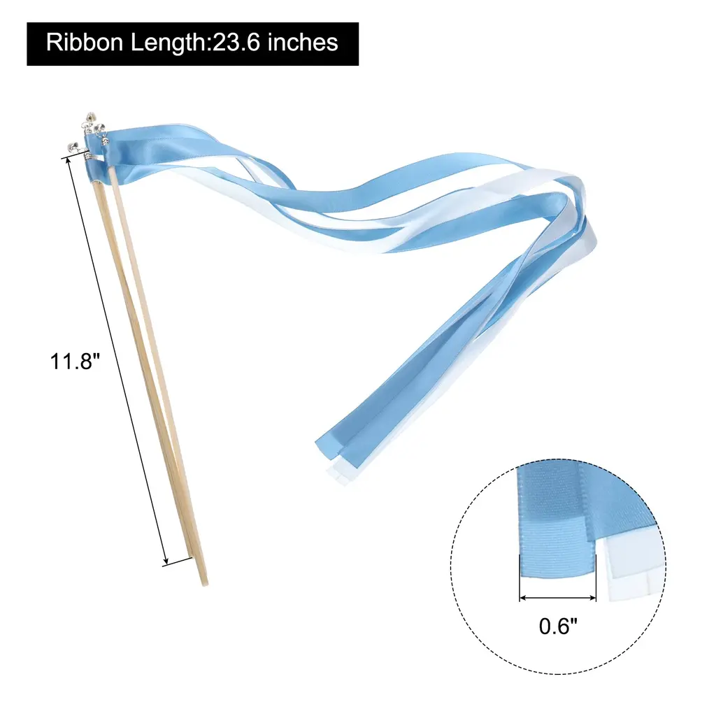 Add a touch of elegance and celebration to your special event with these 20Pcs Wedding Ribbon Sticks. Made from high-quality ribbons, these sticks are perfect for decorating birthday parties, weddings, graduation parties, and more. With a wand length of 11.8 inches and ribbon length of 23.6 inches, these sticks are easy to hold and wave, allowing you to create beautiful patterns in the air. Choose from the colors golden, white, and black to match your event's theme. These ribbon sticks are designed to add fun and create a warm and moving atmosphere, making them ideal for wedding-themed parties. Please remember to keep these ribbon sticks away from fire for safety.Features: