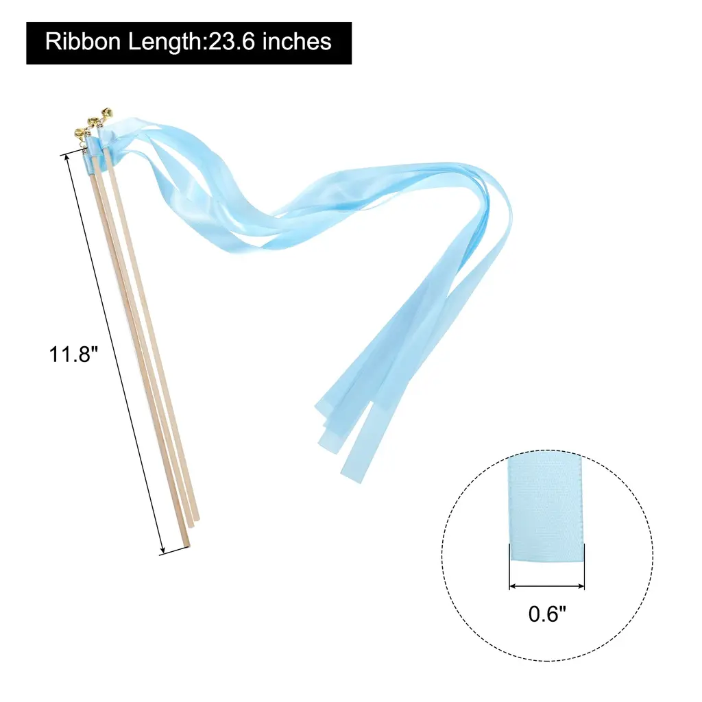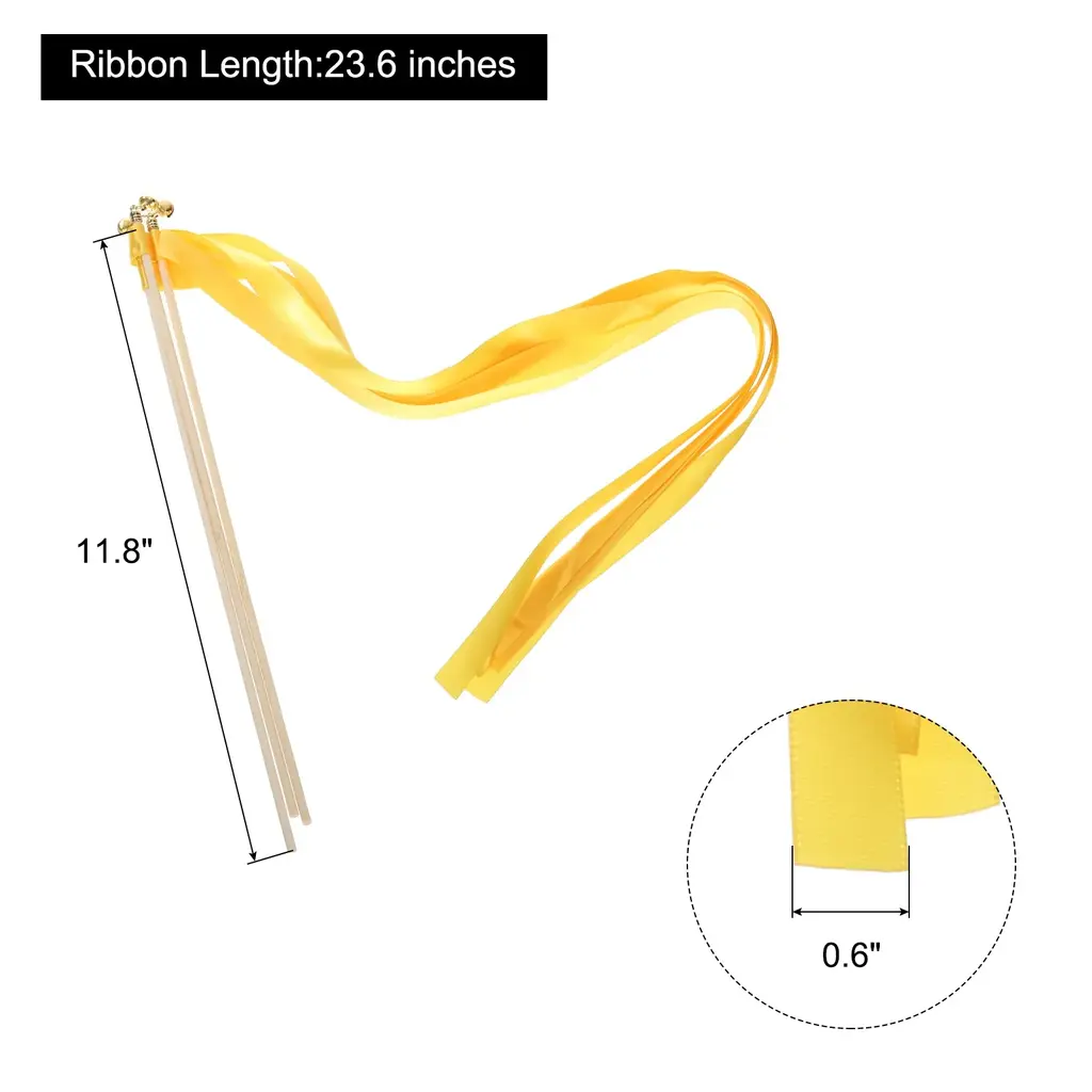 Add a touch of elegance and celebration to your special event with these 20Pcs Wedding Ribbon Sticks. Made from high-quality ribbons, these sticks are perfect for decorating birthday parties, weddings, graduation parties, and more. With a wand length of 11.8 inches and ribbon length of 23.6 inches, these sticks are easy to hold and wave, allowing you to create beautiful patterns in the air. Choose from the colors golden, white, and black to match your event's theme. These ribbon sticks are designed to add fun and create a warm and moving atmosphere, making them ideal for wedding-themed parties. Please remember to keep these ribbon sticks away from fire for safety.Features: