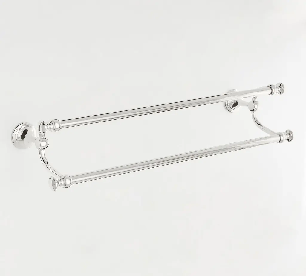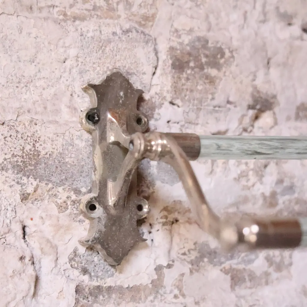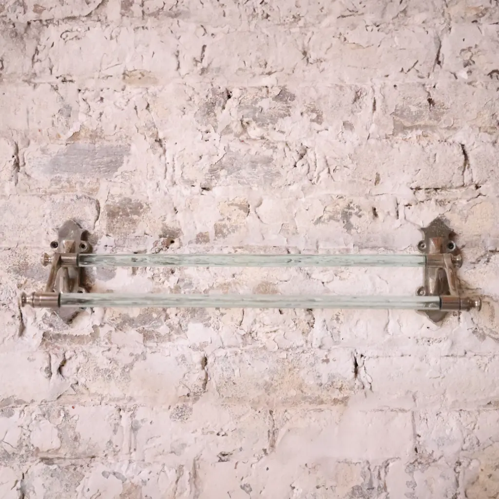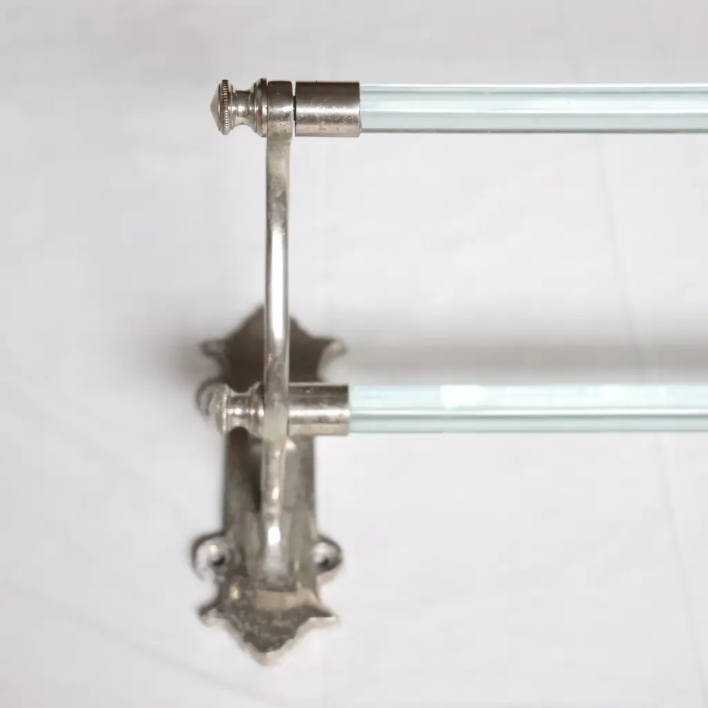 This 20th century French towel holder combines clear glass and metal for a sleek, functional design. Its simple yet elegant construction makes it a stylish addition to any bathroom or powder room, blending vintage charm with everyday practicality.