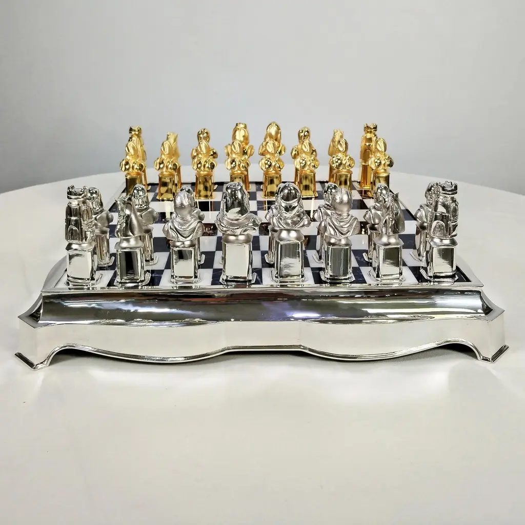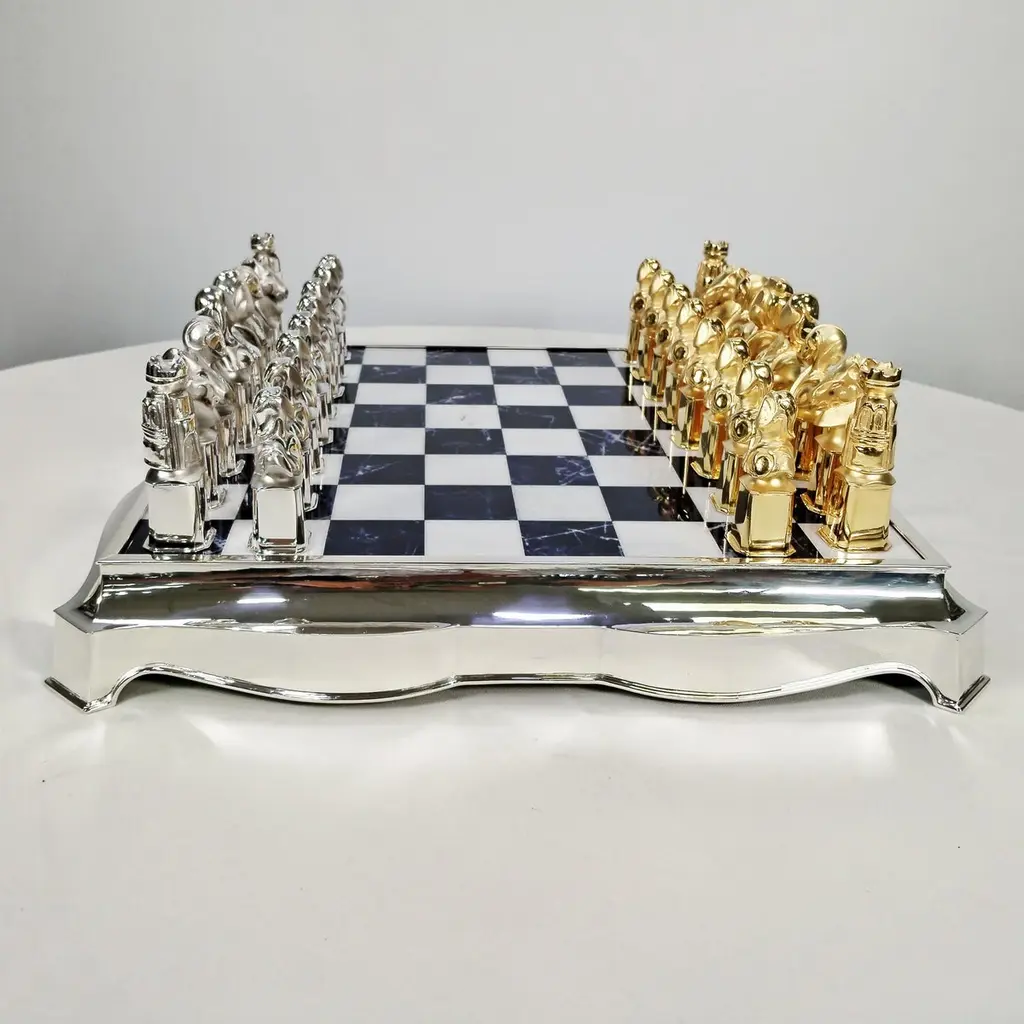 20th Century Italian Sterling Silver Chessboard With A Chess Game