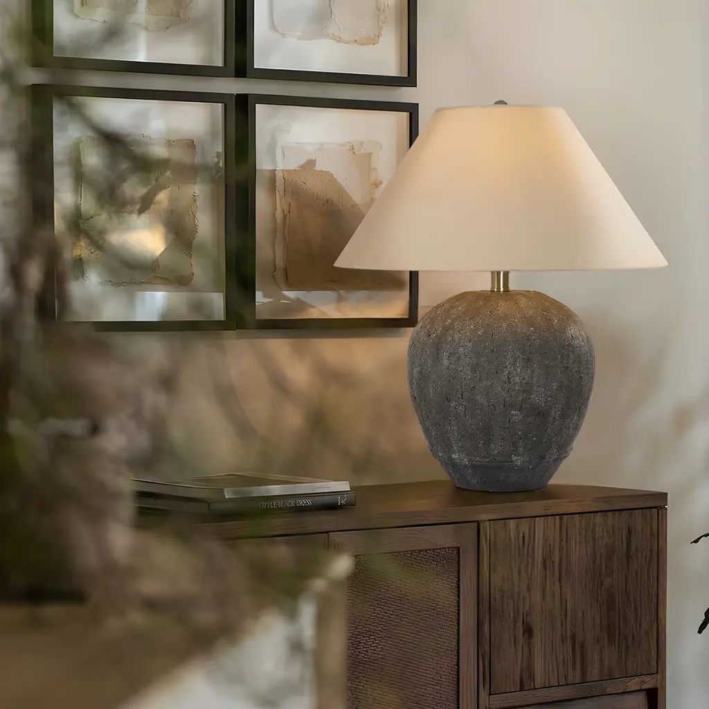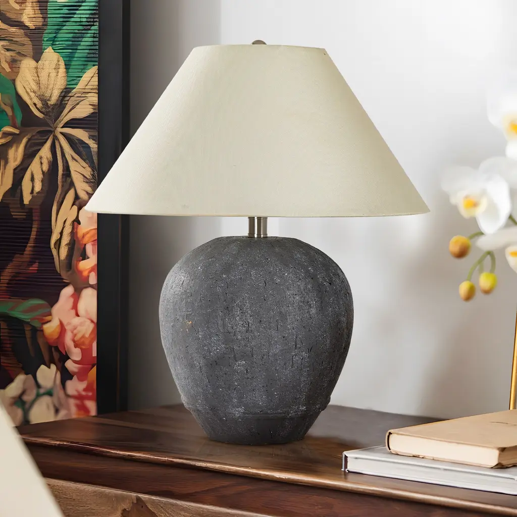 Add a touch of elegance to any room with this unique desk lamp featuring a vase-shaped ceramic base. Its modern, minimalist design blends seamlessly with contemporary decor, while the linen empire-shaped shade creates a soft, even light that fills your space with warmth. The 3-way switch offers adjustable brightness, perfect for setting the right mood or working comfortably. The textured ceramic base contrasts beautifully with the smooth shade, giving the lamp an artistic flair. Easy to assemble with all parts included, this lamp combines style and functionality, making it an ideal addition to your home or office. (light bulb sold separately)Feature:Dimensions: