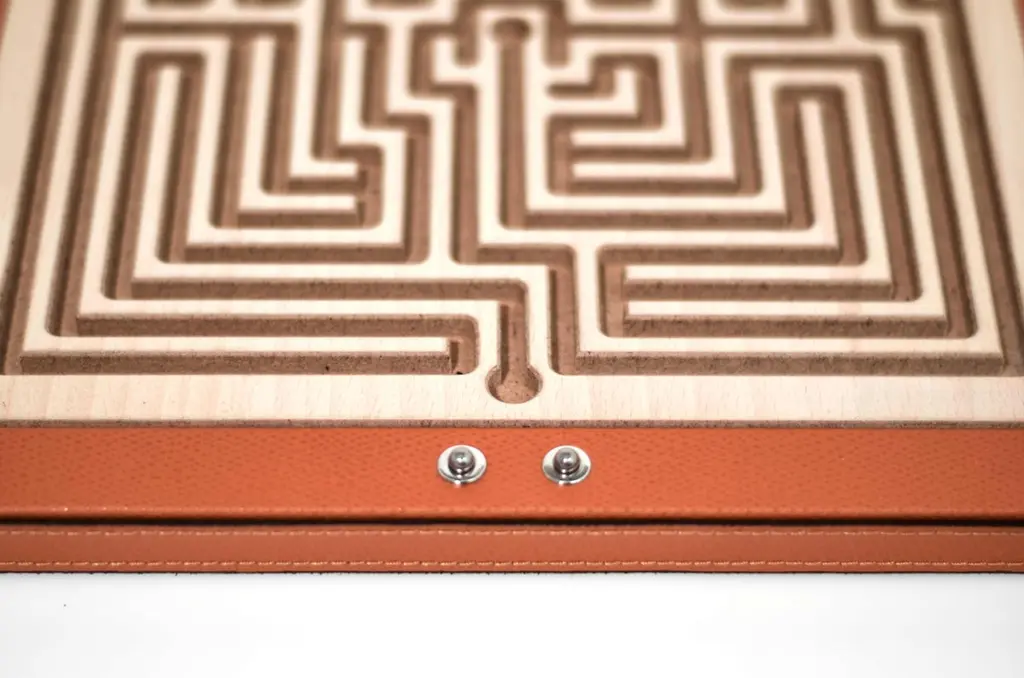 A perfect addition for your game room or the ideal luxury gift?The choice is yours!Arianna, our new wooden square maze is laser cut and finished in genuine leather. Its lines and contrasts make up its labyrinthine structure to create a charming optical effect.