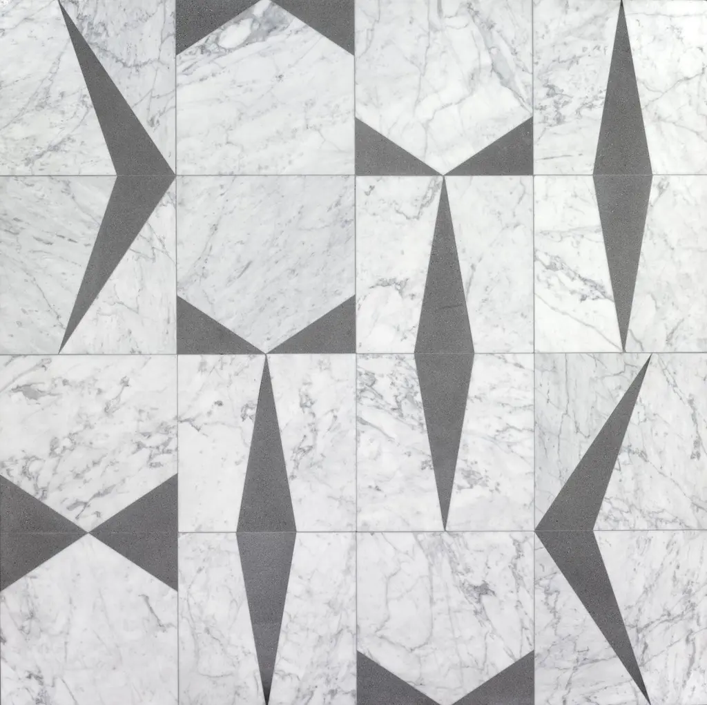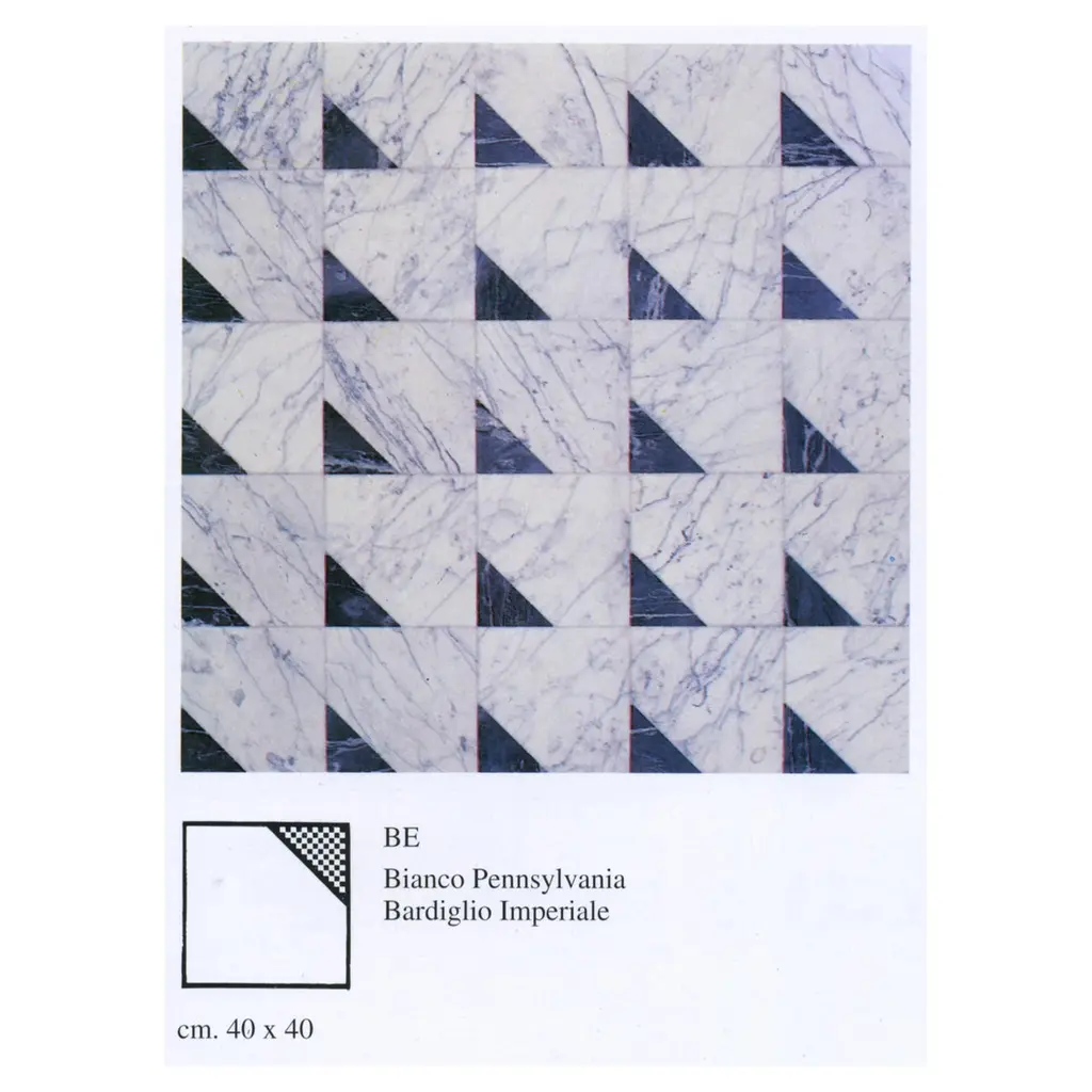 The price is per square meter.Name: AccuminatoMaterials: Bianco Pennsylvania, Pietra SerenaSize : cm 40 x 40Thickness: cm 2KG/MQ: kg 54Finishes: coatedDesigned by: Alessandro Mendini.