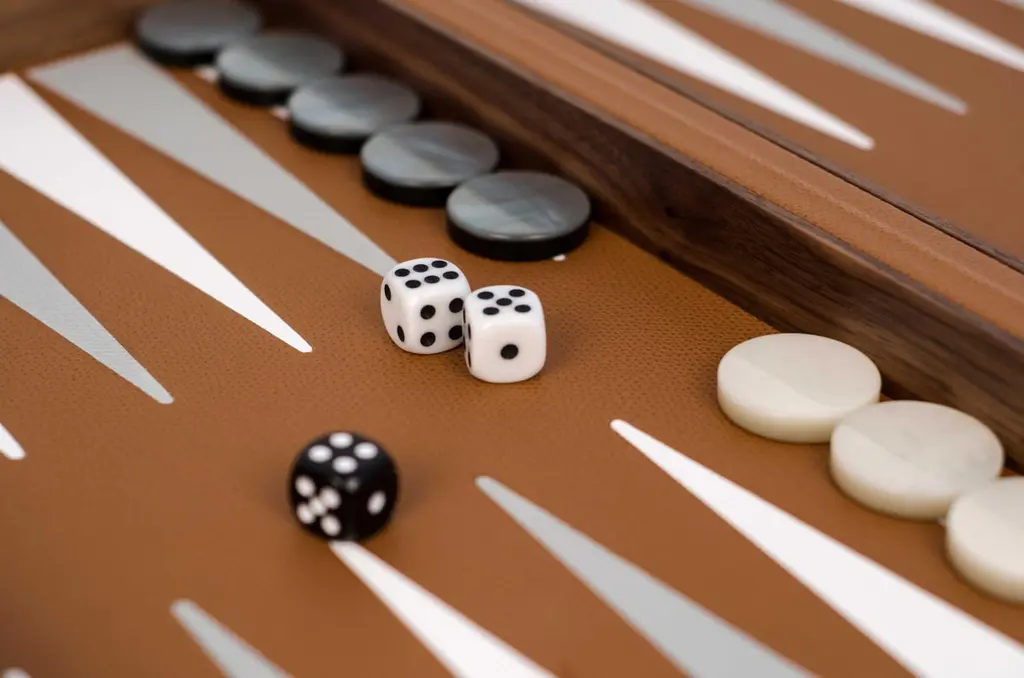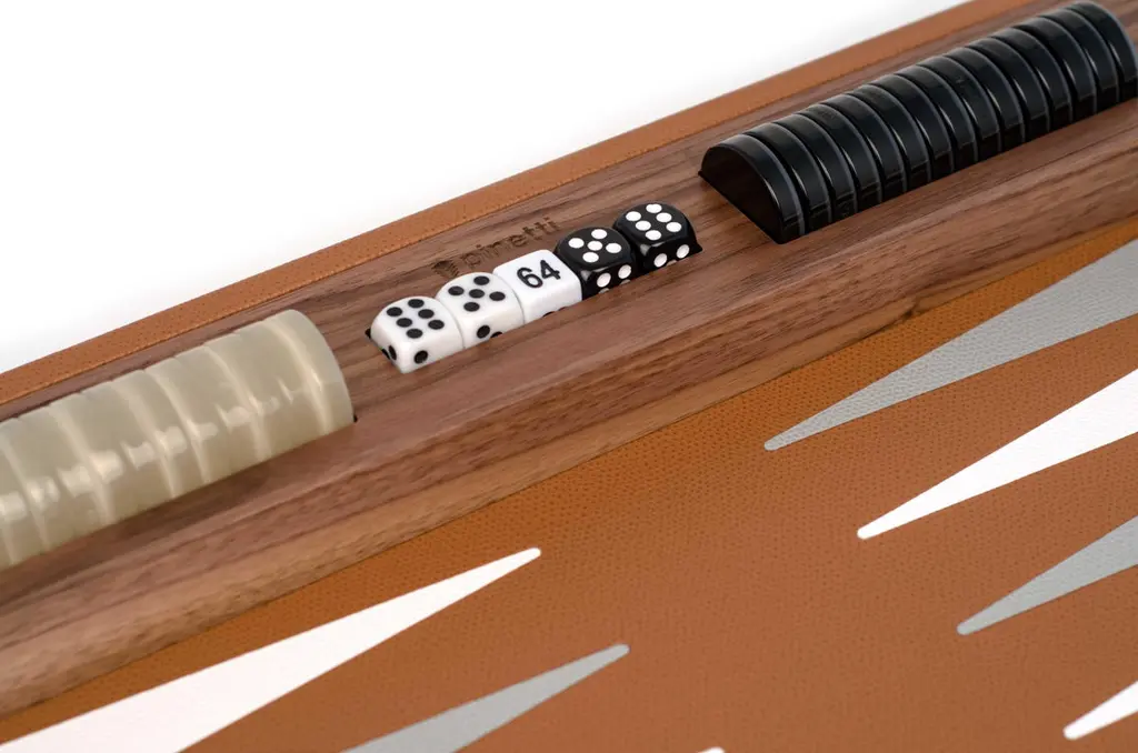 21st Century Camel Leather And Walnut Wood Backgammon Set Handcrafted In Italy
