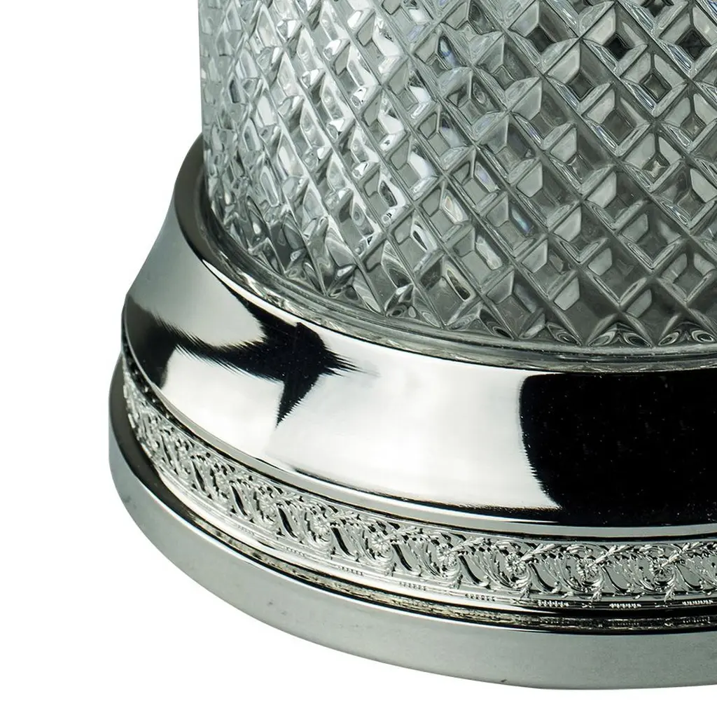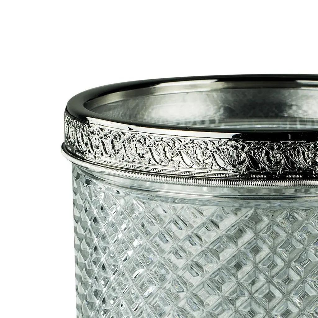 21st century hand-carved clear crystal waste-bin with chrome bronze without cover.Each object is handcrafted and the care for every detail makes each item unique in its kind.The style of this waste-bin is a modern reinterpretation of an item from the second half of the 18th century in France. Also Oggetti d'Arte will follow with the same passion the request of the most qualified studies of interior architecture from around the world, helping them in achievement of their most ambitious projects.This equipped pedestal, at the customer's request, can be made with different metal finishes: silver, antique silver, patinated gold, french gold, nikel and with different crystal colors so that it can be inserted in the best possible way within your furniture.