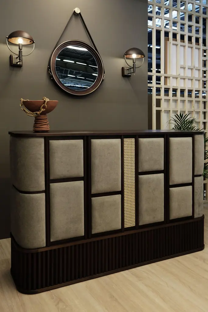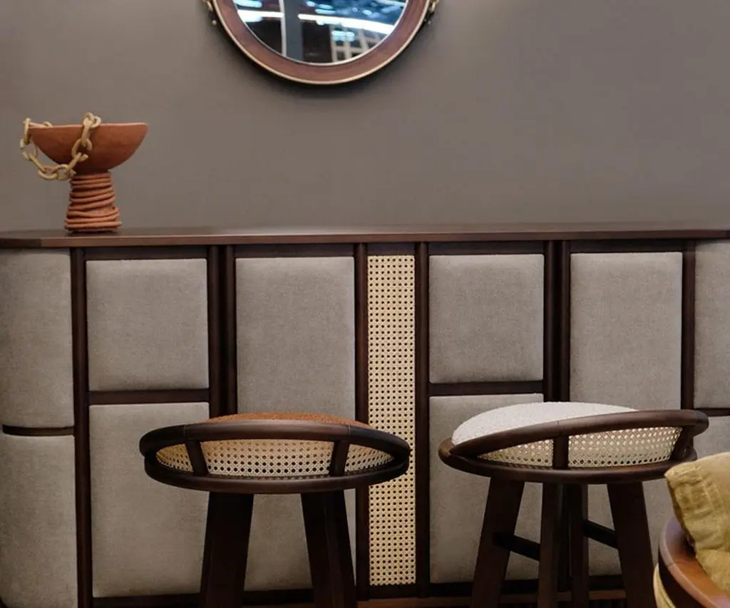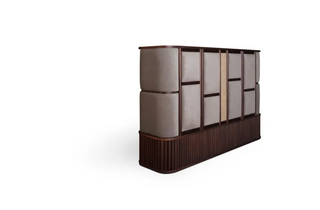 Member of one of London’s most known gentlemen clubs, the White's, Tom Stacey was a British writer that used to write his literary work in response to the inner clamor of each work. As a legitimate gentleman, Tom was the founder of Wotton's Society and the winner of the Essay Prize.Preserving the essence of natural materials, the Wood Tailors Club's designers expanded its handcrafted collection and designed the Tom Bar Counter.Handcrafted in walnut wood with expertise by Portuguese Artisans, featuring rattan and linen accents, the Tom Bar Counter will be the piece that stands out in an exclusive atmosphere while keeping drinks. Evoking a modern yet classic aesthetic design.