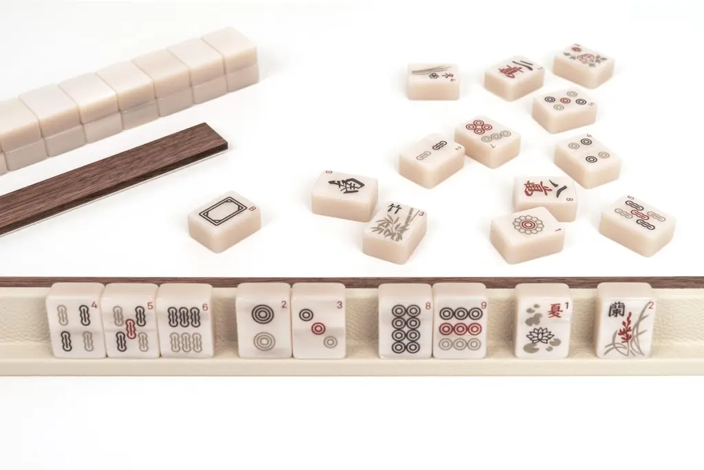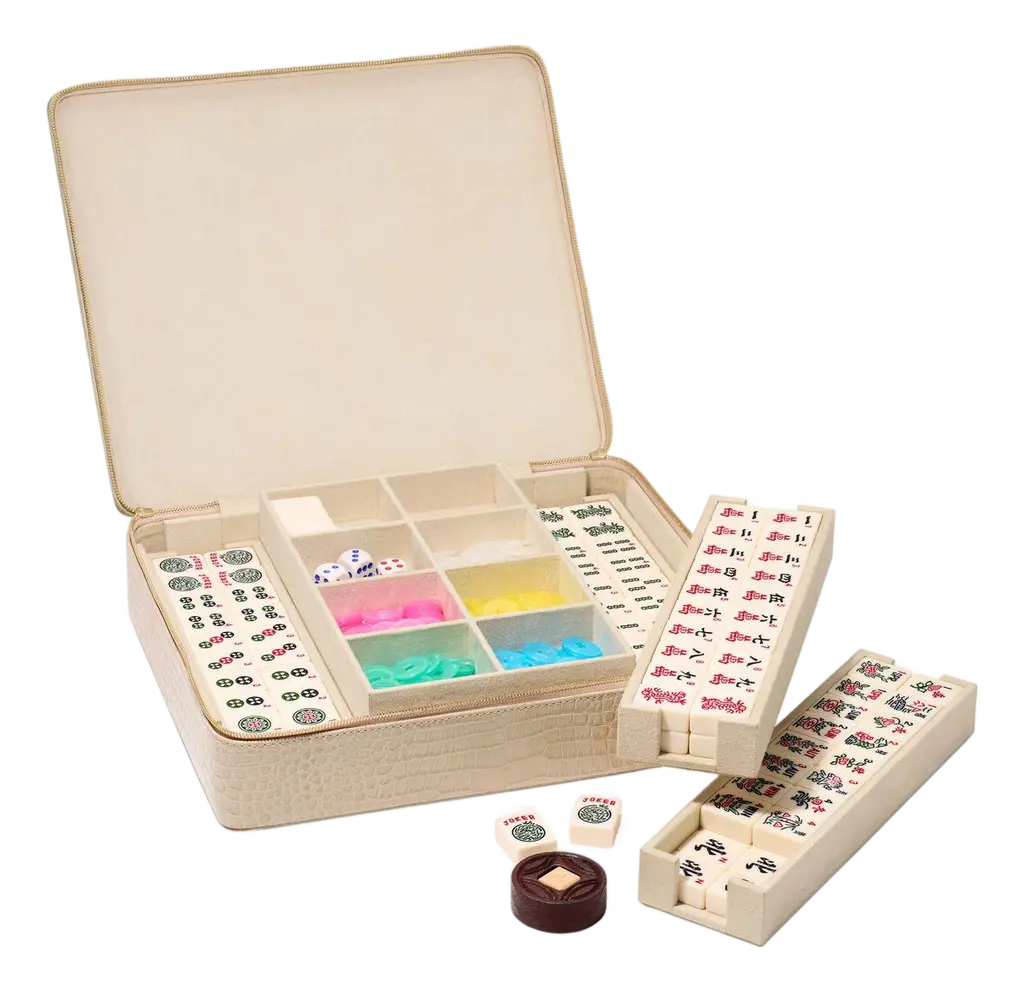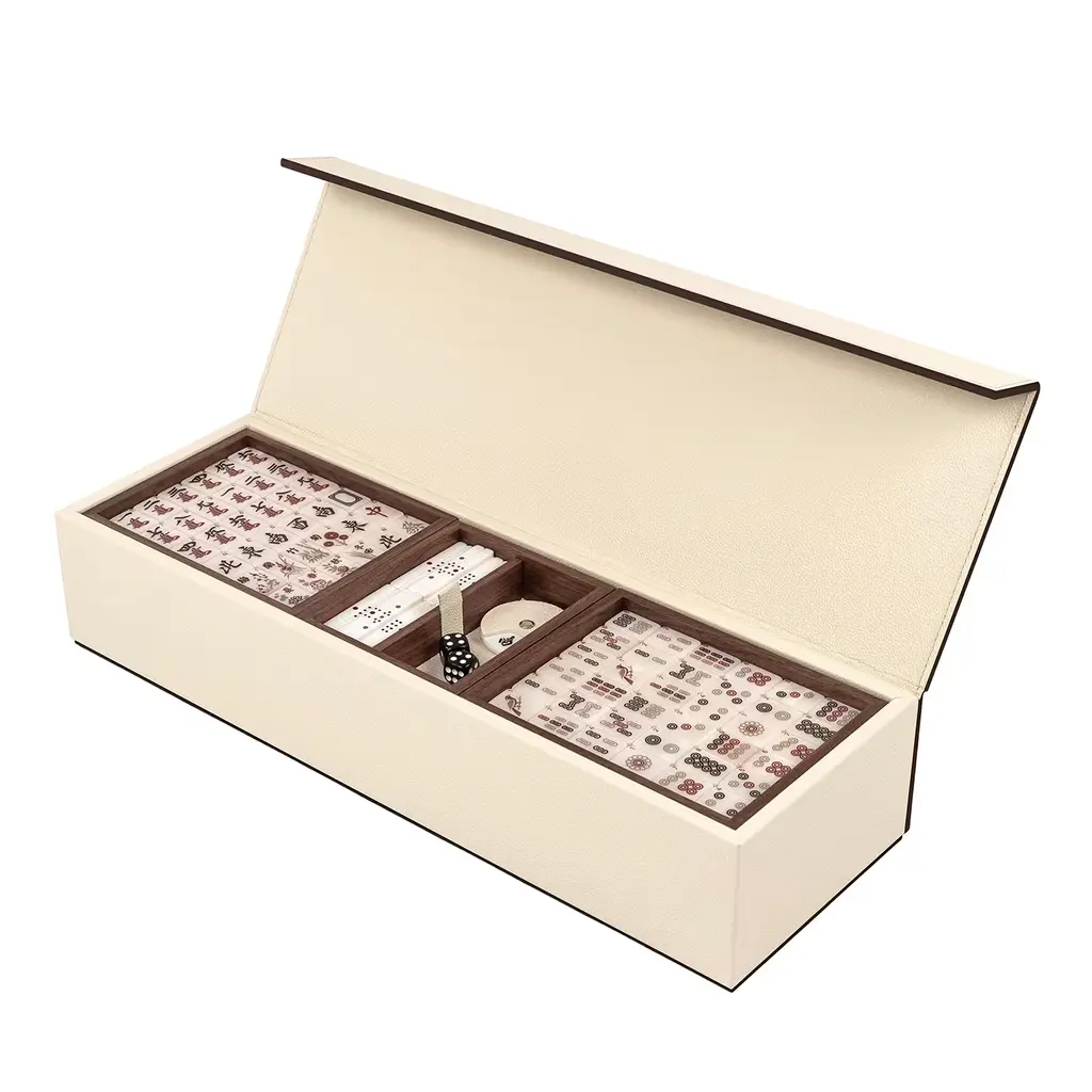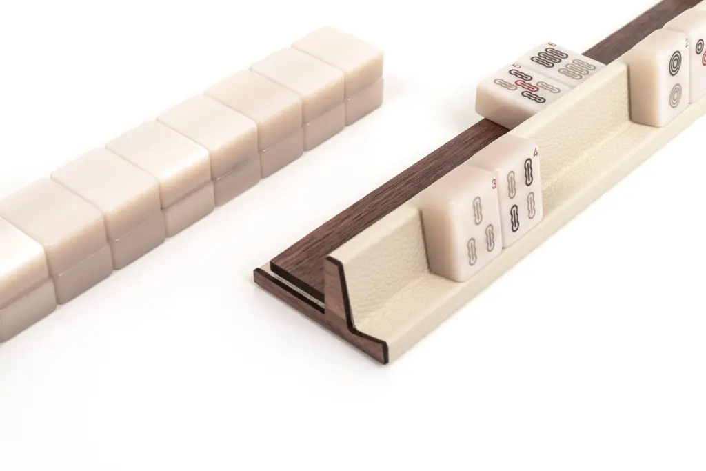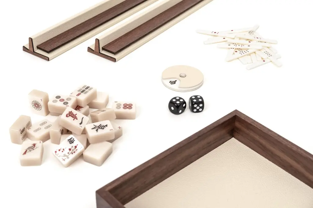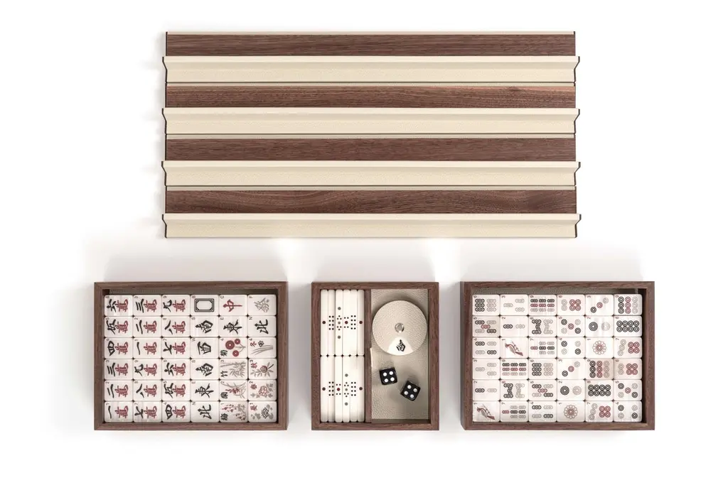 21st Mahjong Game Set In Walnut Wood And Leather Handmade In Italy