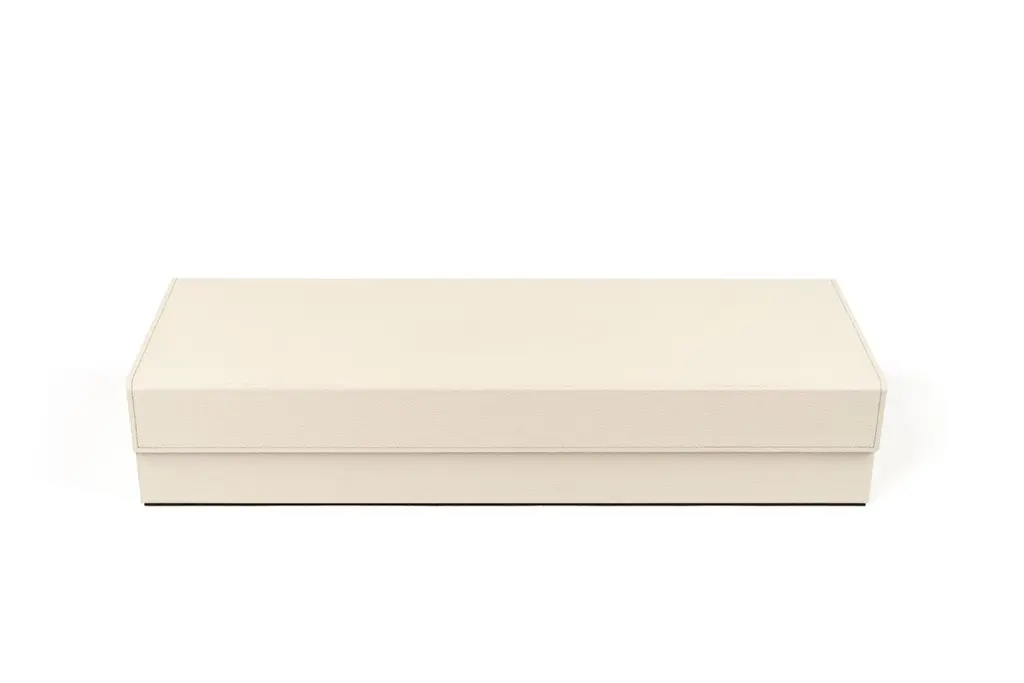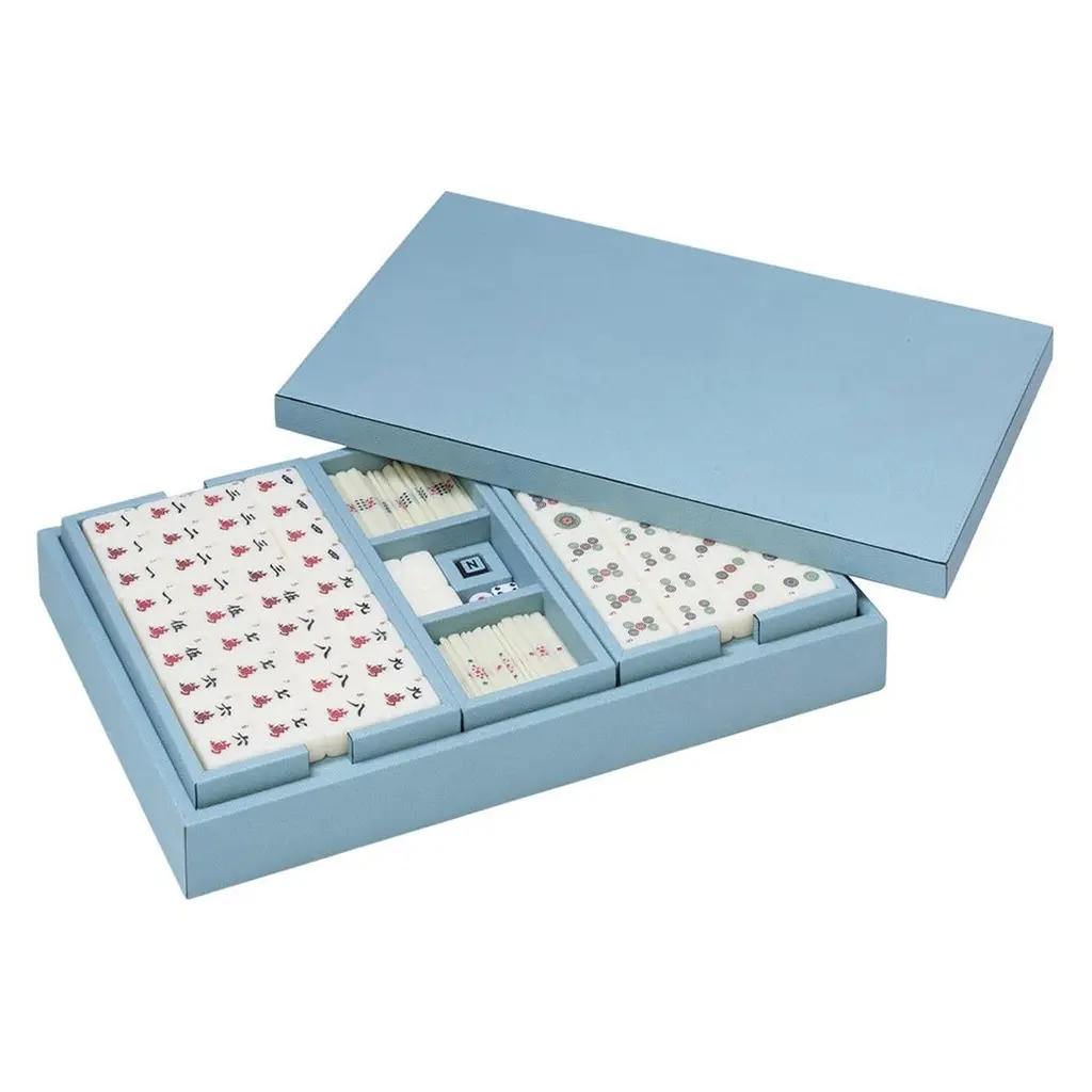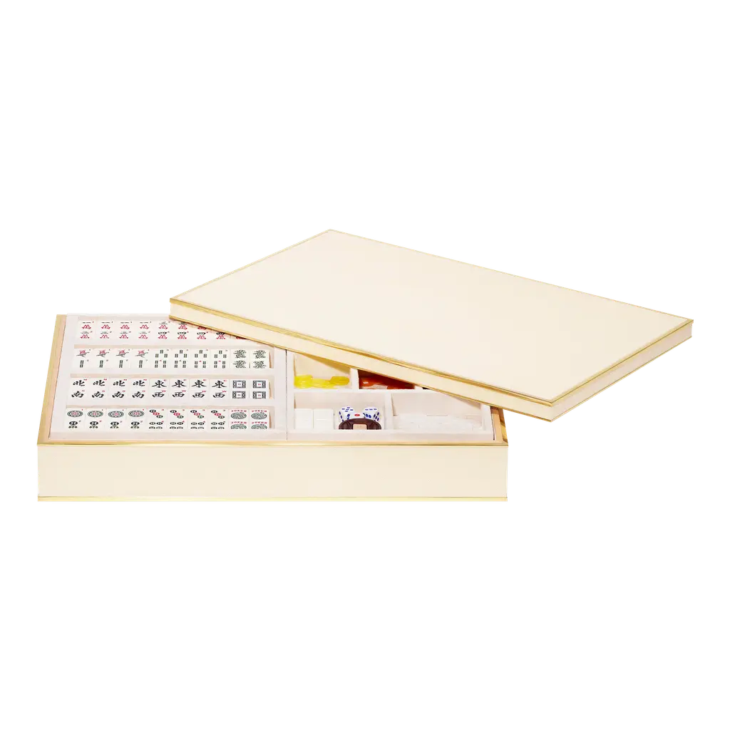 Our brand new Mahjong, a complete restyling for one of the most popular and played games worldwide. Entirely covered in genuine calf leather, our Mahjong comes in a luxurious wooden box with a magnetic closure lid. The set is composed by 144 pearled tiles, 88 sticks, 4 racks with magnetic removable pushers and a revolving wind indicator.