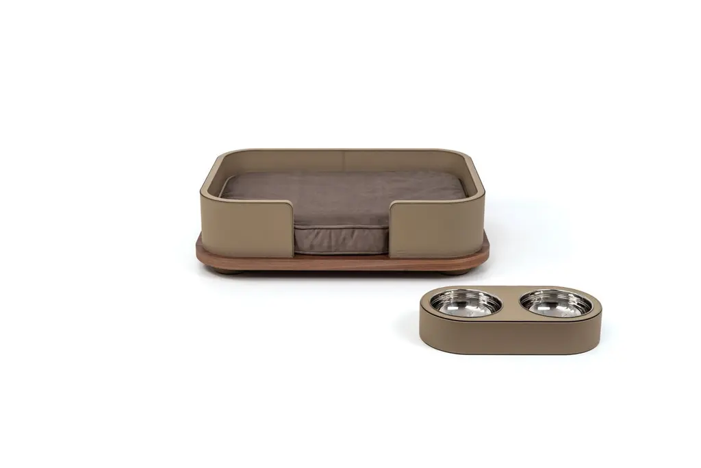A rigid structure fully covered with premium calf leather with removable and washable stainless steel bowls. Our Pet bowls are available in two sizes.A brand new collection designed with the comfort and well-being of your faithful four-legged friend in mind, without neglecting style and elegance. A new line of accessories entirely "Made in Italy", characterized by the unmistakable Pinetti style that seamlessly integrates with our home collection. Contact us for more customizations.