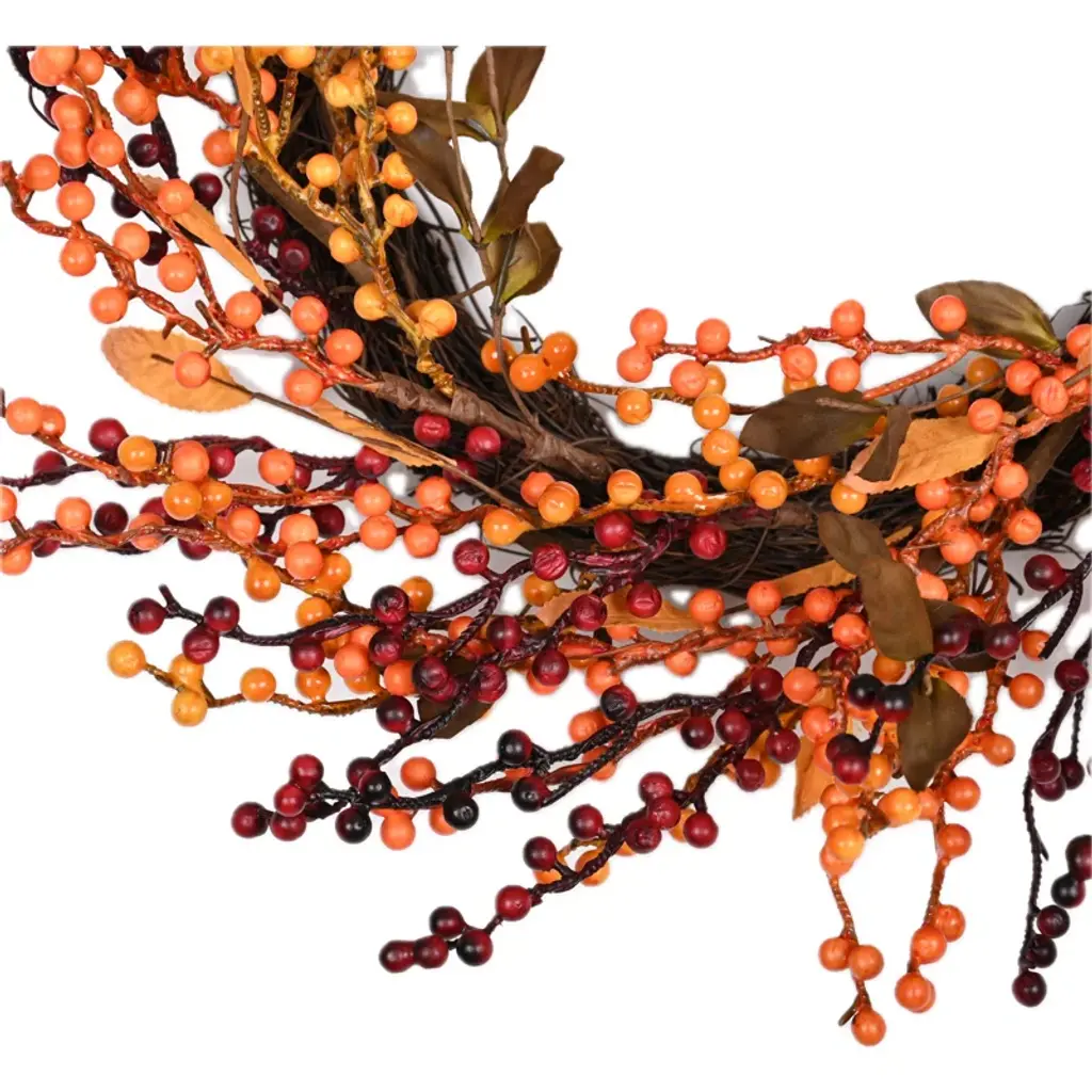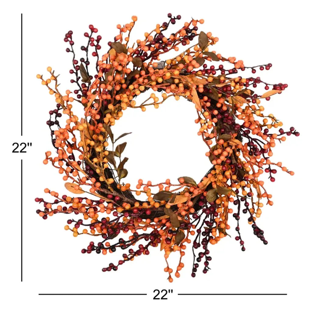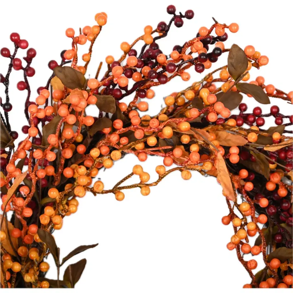 Celebrate the harvest season with this beautiful Farmhouse Faux Foam Fall Autumn for your front door. Crafted on a sturdy twig base, this is adorned with vibrant foam berries, adding a touch of richness and warmth to your Thanksgiving Day decor. The combination of rustic charm and colorful berry accents perfectly captures the essence of autumn, creating a festive atmosphere for your home or Thanksgiving party. Designed for easy maintenance, this is ideal for indoor or outdoor use, bringing seasonal joy year after year.