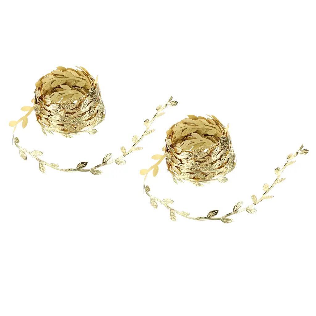 It is great for a wide range of craft projects, including floral arrangements, wreaths, gift wrapping, DIY decorations, scrapbooking. It provides endless creative possibilities. Suitable for birthdays, Halloween, Christmas, parties, bridal showers, and fall weddings. It provides endless creative possibilities.SpecificationColor: Gold ToneMaterial: PolyesterSingle Roll Size: 10 Meters x 30mm / 393.7 x 1.2 inch(L*W)Packing List: 2 Roll x Decorative Leaves RibbonAdvantageNatural and Realistic: This leaf ribbon features a natural and realistic design, with detailed leaves that resemble the beauty of fresh foliage, adding a touch of nature to your craft projects.Quality Material: Crafted from durable materials, this leaf ribbon is flexible and resistant to fraying or fading, ensuring long-lasting use and vibrant color retention.InstructionThe leaf plant ribbon is easy to cut and shape, allowing you to customize its length and create desired designs and arrangements. Its flexibility makes it effortless to incorporate into various crafts.NOTE: Depending on your project, you may need different widths or lengths. Determine the appropriate size to achieve the desired effect and ensure it will be sufficient for your needs.