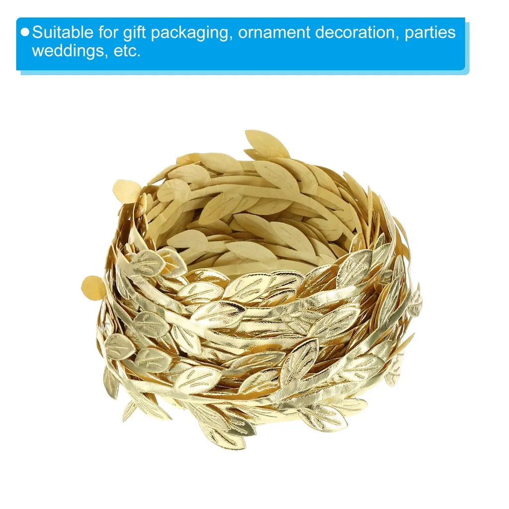 It is great for a wide range of craft projects, including floral arrangements, wreaths, gift wrapping, DIY decorations, scrapbooking. It provides endless creative possibilities. Suitable for birthdays, Halloween, Christmas, parties, bridal showers, and fall weddings. It provides endless creative possibilities.SpecificationColor: Gold ToneMaterial: PolyesterSingle Roll Size: 10 Meters x 30mm / 393.7 x 1.2 inch(L*W)Packing List: 2 Roll x Decorative Leaves RibbonAdvantageNatural and Realistic: This leaf ribbon features a natural and realistic design, with detailed leaves that resemble the beauty of fresh foliage, adding a touch of nature to your craft projects.Quality Material: Crafted from durable materials, this leaf ribbon is flexible and resistant to fraying or fading, ensuring long-lasting use and vibrant color retention.InstructionThe leaf plant ribbon is easy to cut and shape, allowing you to customize its length and create desired designs and arrangements. Its flexibility makes it effortless to incorporate into various crafts.NOTE: Depending on your project, you may need different widths or lengths. Determine the appropriate size to achieve the desired effect and ensure it will be sufficient for your needs.