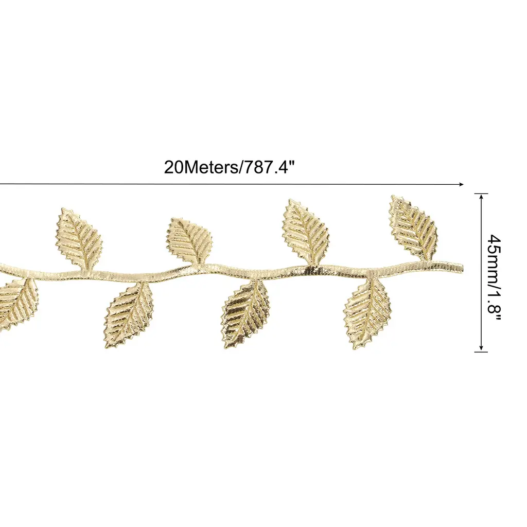 It is great for a wide range of craft projects, including floral arrangements, wreaths, gift wrapping, DIY decorations, scrapbooking. It provides endless creative possibilities. Suitable for birthdays, Halloween, Christmas, parties, bridal showers, and fall weddings. It provides endless creative possibilities.SpecificationColor: Gold ToneMaterial: PolyesterSize: 20 Meters x 45mm / 787.4 x 1.8 inch(L*W)Packing List: 1 x Decorative Leaves RibbonAdvantageNatural and Realistic: This leaf ribbon features a natural and realistic design, with detailed leaves that resemble the beauty of fresh foliage, adding a touch of nature to your craft projects.Quality Material: Crafted from durable materials, this leaf ribbon is flexible and resistant to fraying or fading, ensuring long-lasting use and vibrant color retention.InstructionThe leaf plant ribbon is easy to cut and shape, allowing you to customize its length and create desired designs and arrangements. Its flexibility makes it effortless to incorporate into various crafts.NOTE: Depending on your project, you may need different widths or lengths. Determine the appropriate size to achieve the desired effect and ensure it will be sufficient for your needs.