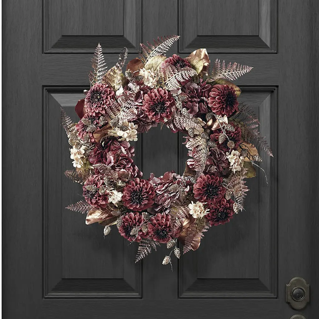 Bring home that fresh from the garden look with this 22in Fall Hydrangea and Rose Autumn Artificial Wreath. Inspired by nature, beautiful silk rose flowers in bloom are highlighted against a backdrop of fall colored hydrangeas. Crafted from high-quality materials, admire the natural details of the elements. With a diameter of 22", hang in any area in need of some life. Makes a great addition to any door or bare wall and brightens your space longer than a fresh bouquet.