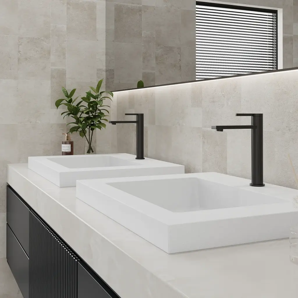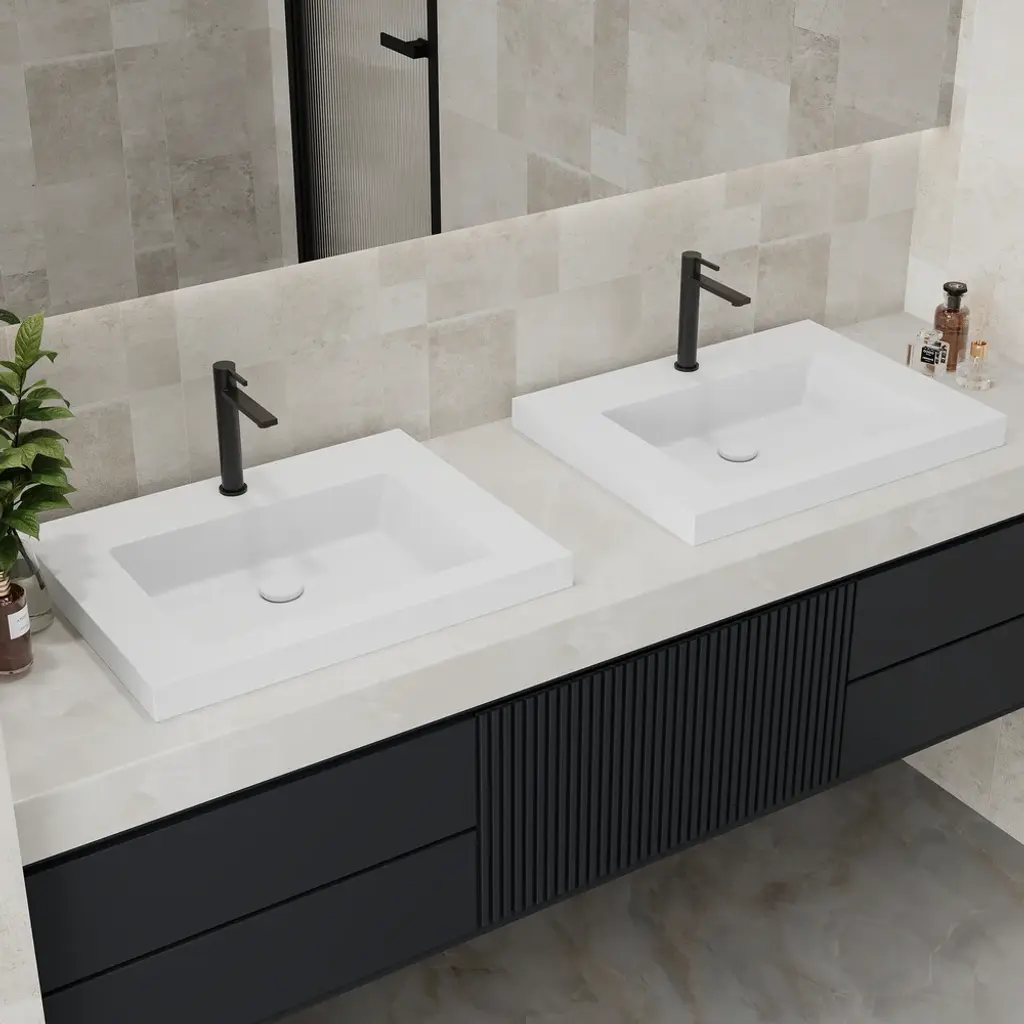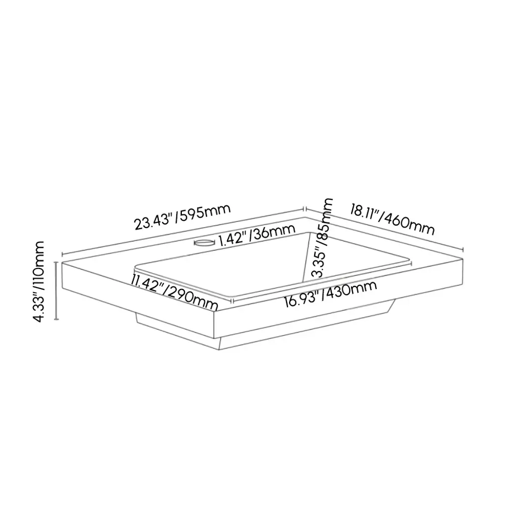 23"rectangular Concrete White Drop-In Bathroom Sink