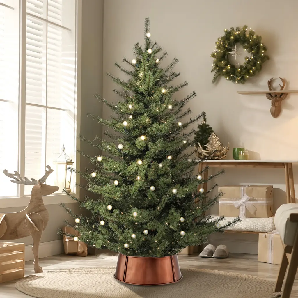 Enhance your holiday decor with our 24.5x28" Metal Tree Collar. This stylish and sturdy collar features a sleek metal design that adds a touch of modern elegance to your Christmas tree. The copper finish complements any holiday theme while providing a polished look to your tree base. Designed for easy assembly and disassembly, it ensures convenience and durability throughout the festive season. Elevate the beauty of your tree and create a stunning focal point in your holiday decor with this chic and functional tree collar. Embrace the spirit of the holidays with a cozy collection of farmhouse-inspired décor!