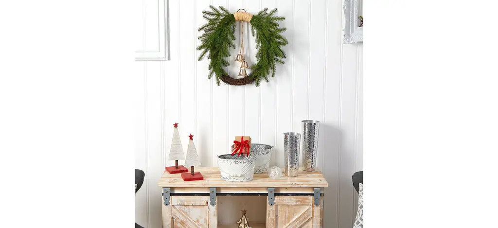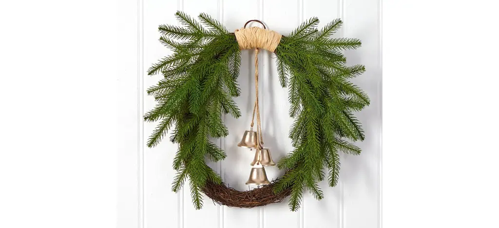 24" Holiday Foliage With Hanging Bells Artificial Wreath
