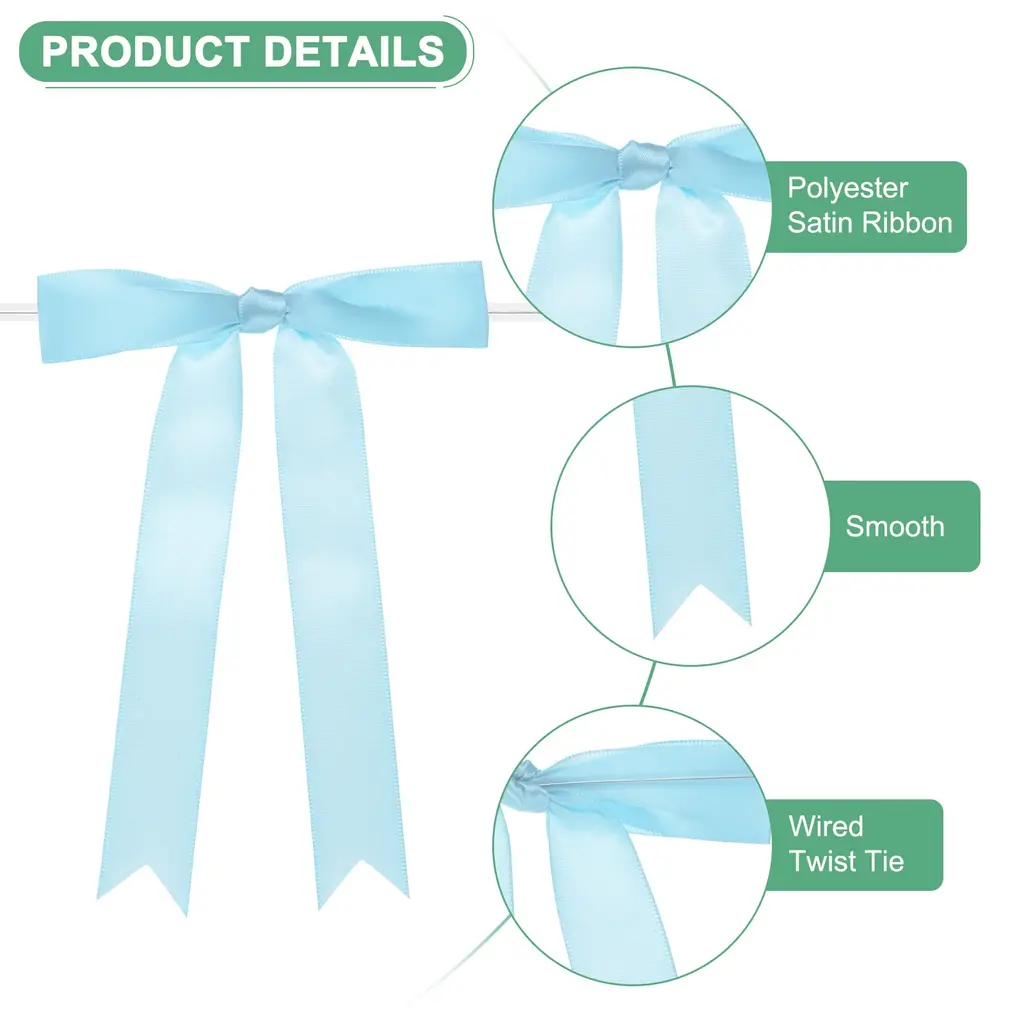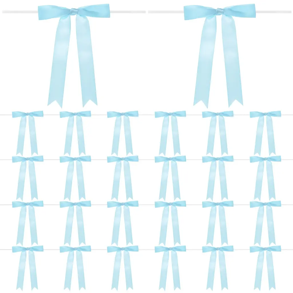 24-Pack Satin Ribbon Twist Tie Bows 7X5" Bow Twist For Craft - Light Blue