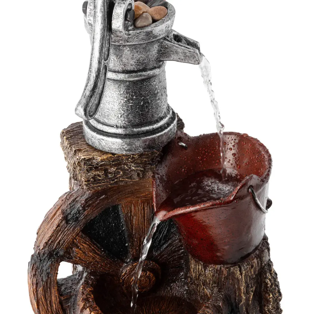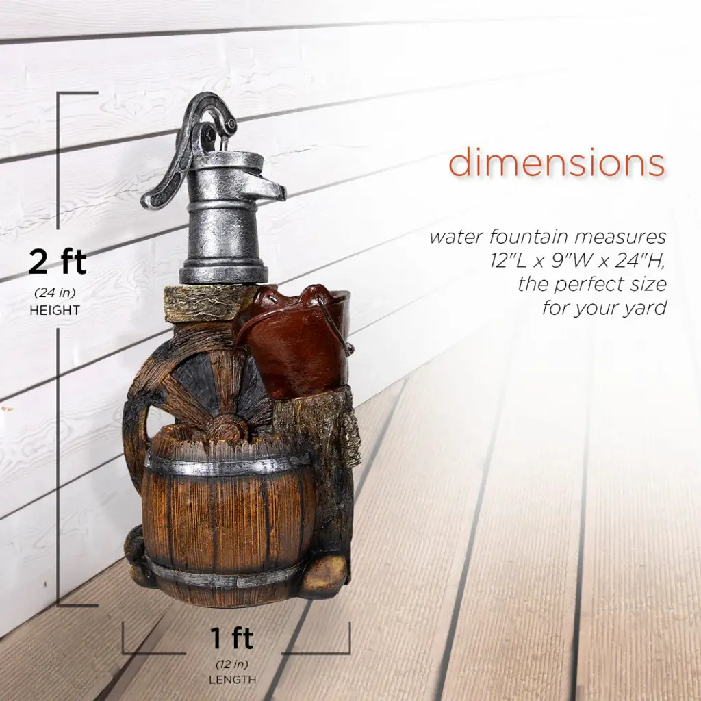 24" Tall Outdoor 3-Tier Old-Fashioned Pump Barrel Fountain Yard Art Decor