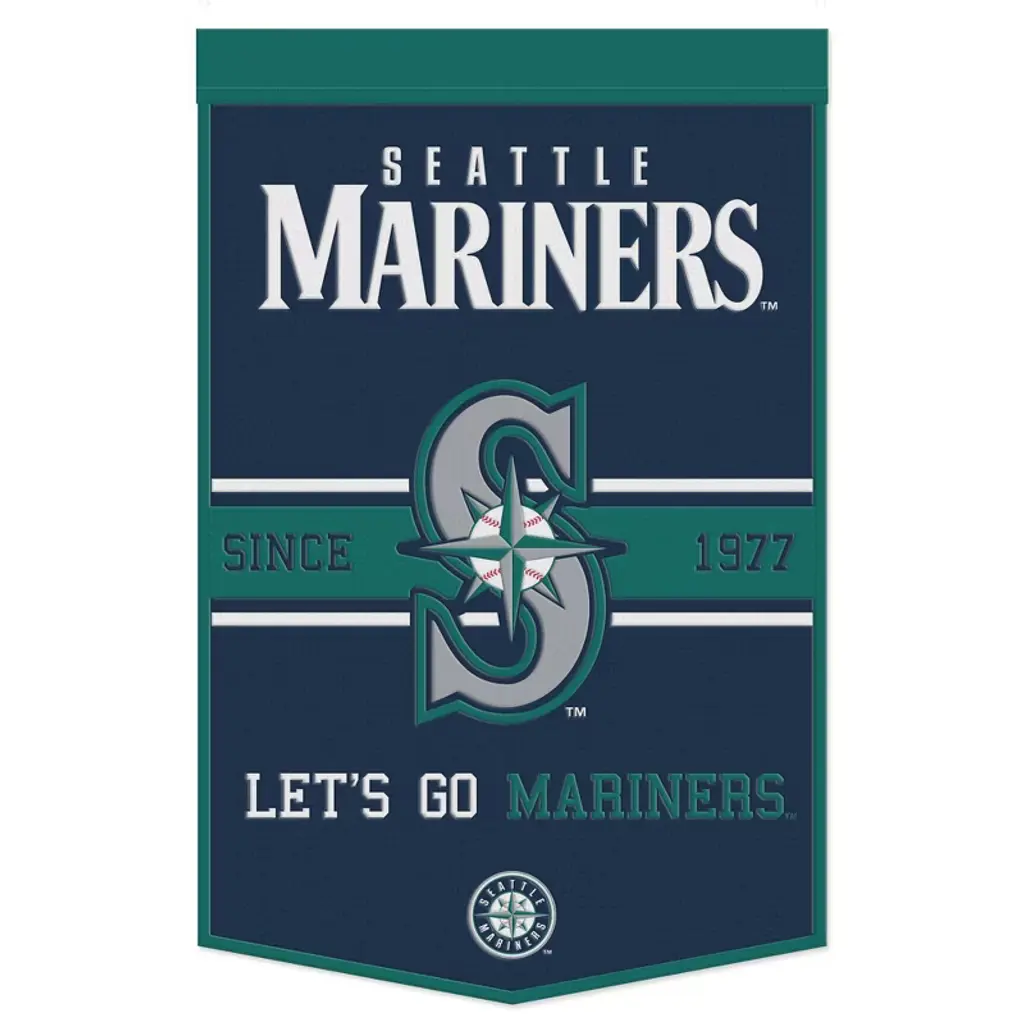 This stunning 24" x 38" Seattle Mariners Wool Banner is perfect for showing off your team spirit - just about anywhere! Hang it in your dorm or bedroom, your office, or for the world to see. This is made using a premium soft felt material and high quality embroidered team logo.
