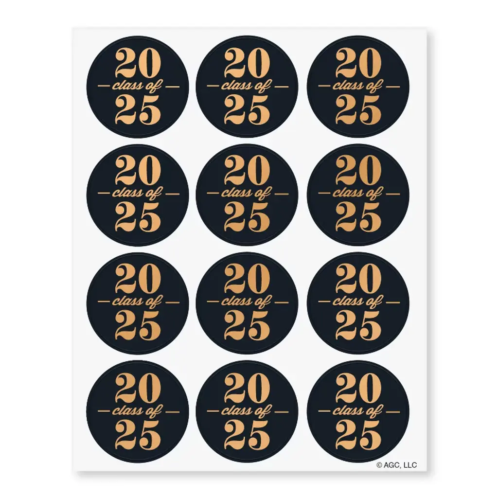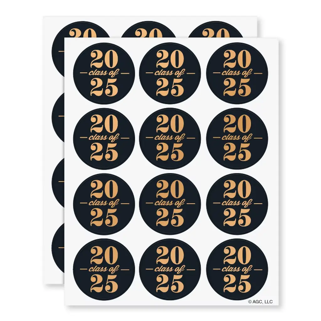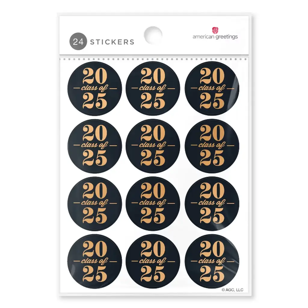 Mark a major milestone with these stylish American Greetings graduation stickers for the Class of 2025. Each pack contains two sheets of stickers, elegantly designed in a striking black and gold color scheme, ideal for adding a touch of celebration to any graduation accessory or decor. Perfect for personalizing party favors, cards, and more, these stickers help you celebrate this significant accomplishment in style. We hope you'll find fun and creative ways to use them for your graduation celebration!