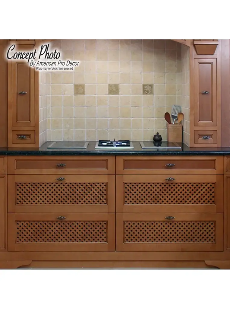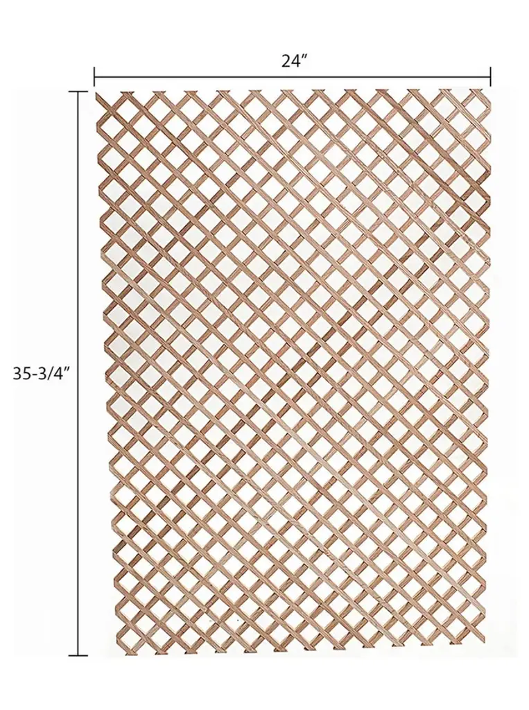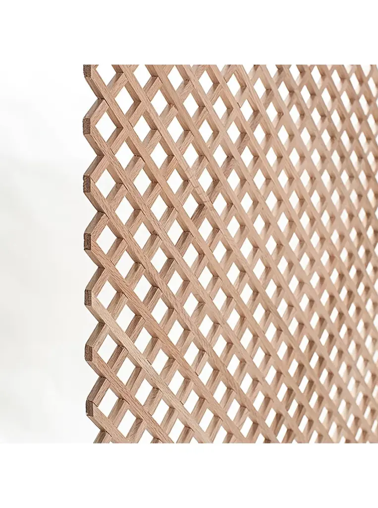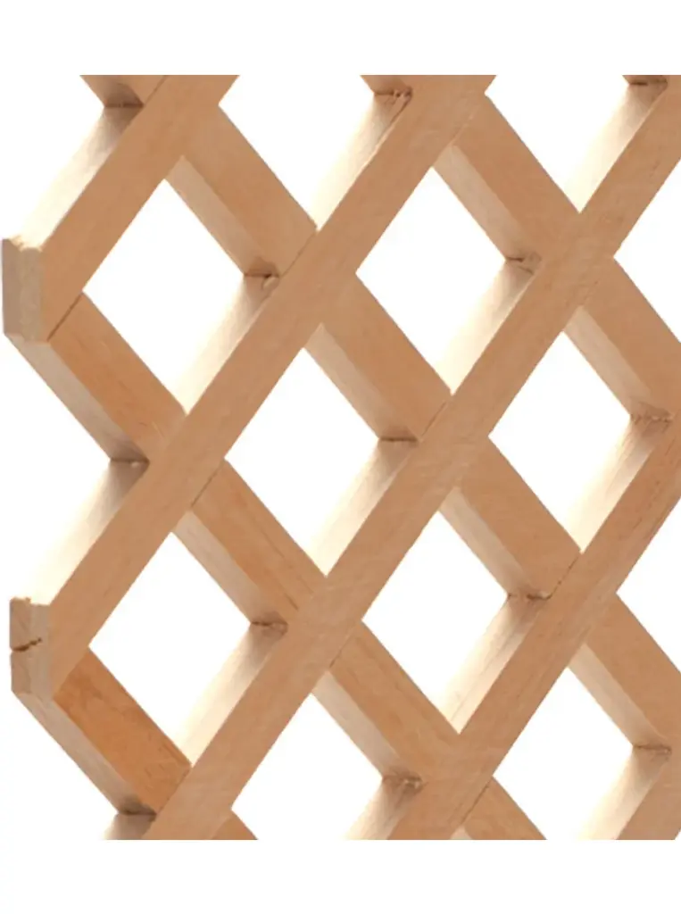 Lattice Panel Inserts are made from Furniture grade Solid North American Hardwoods which accepts stains beautifully. It adds a unique style decor to any cabinet door.Panel size: 35-3/4" Wide x 24" High x 3/8" ThickCell size: 1" x 1"Slat size: 3/8"Diagonal PatternManufactured from Solid North American Red OakNatural wood grain texture unfinishedEasy to cut to desired size and simple to installSquare edgesSanded and ready to finishCan be painted, stained or faux finishedIdeal for Cabinet door inserts, wine cabinets, entertainment centersMade of authentic premium furniture stain grade hardwoodsAdds a touch of elegance and embellishment to any woodworking project