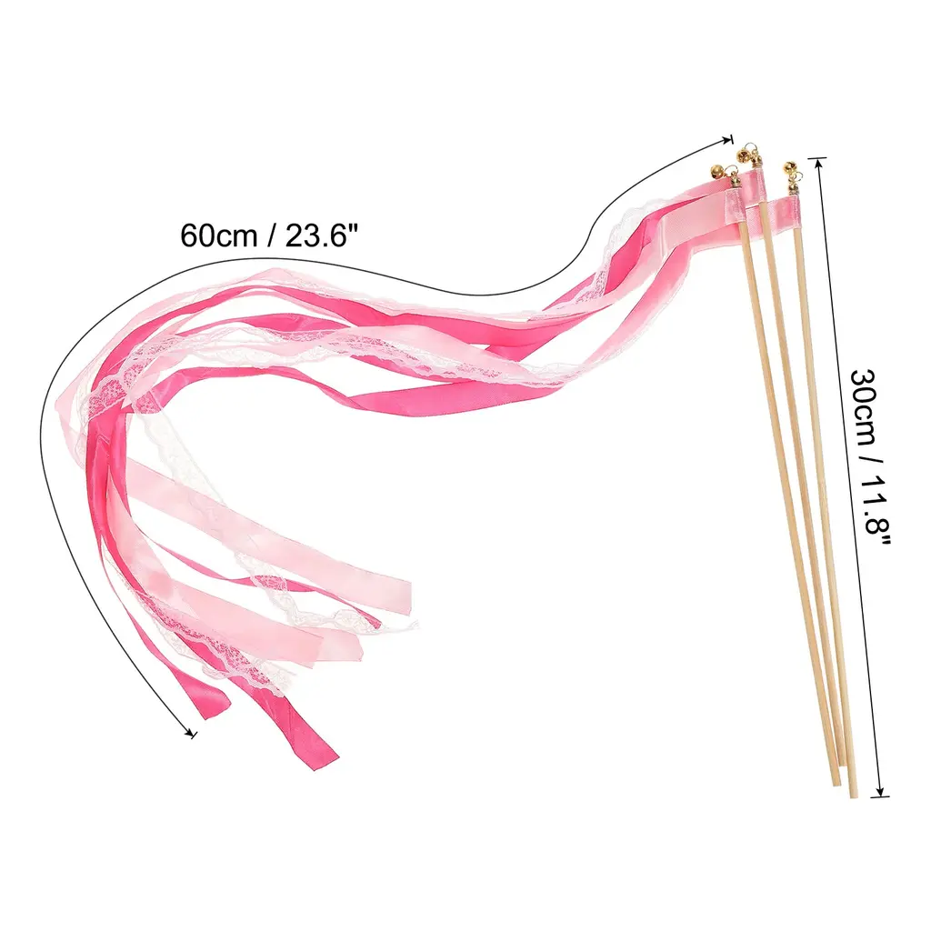 The beautiful and romantic fairy wands can add a magical touch to weddings, bridal showers, send off, birthdays, party favors, other special events; Also a fun accessory for costumes, dress-up play, or cheerful holiday celebrations.Specification Color: Navy Blue, GreyRibbon Width: 1.5cm / 0.59 inchRibbon Length: 60cm / 23.62 inchStick Length: 30cm / 11.81 inchPacking List: 24 x Decorative Ribbon Fairy Wands with BellsAdvantageMade of lightweight satin ribbon and star-shaped ornament, a wooden wand handle is comfortable to hold and wave around. The colorful ribbons create an enchanting and playful appearance, the jingle bells add a melodious and joyous sound while waving.InstructionHold the wand by the handle, ensuring a secure grip. Wave the wand gently in the air to create flowing movements with the ribbons.NOTEKeep them away from open flame or heat sources to prevent damage. Ensure that the ribbons are securely attached to the wand to avoid potential harm.