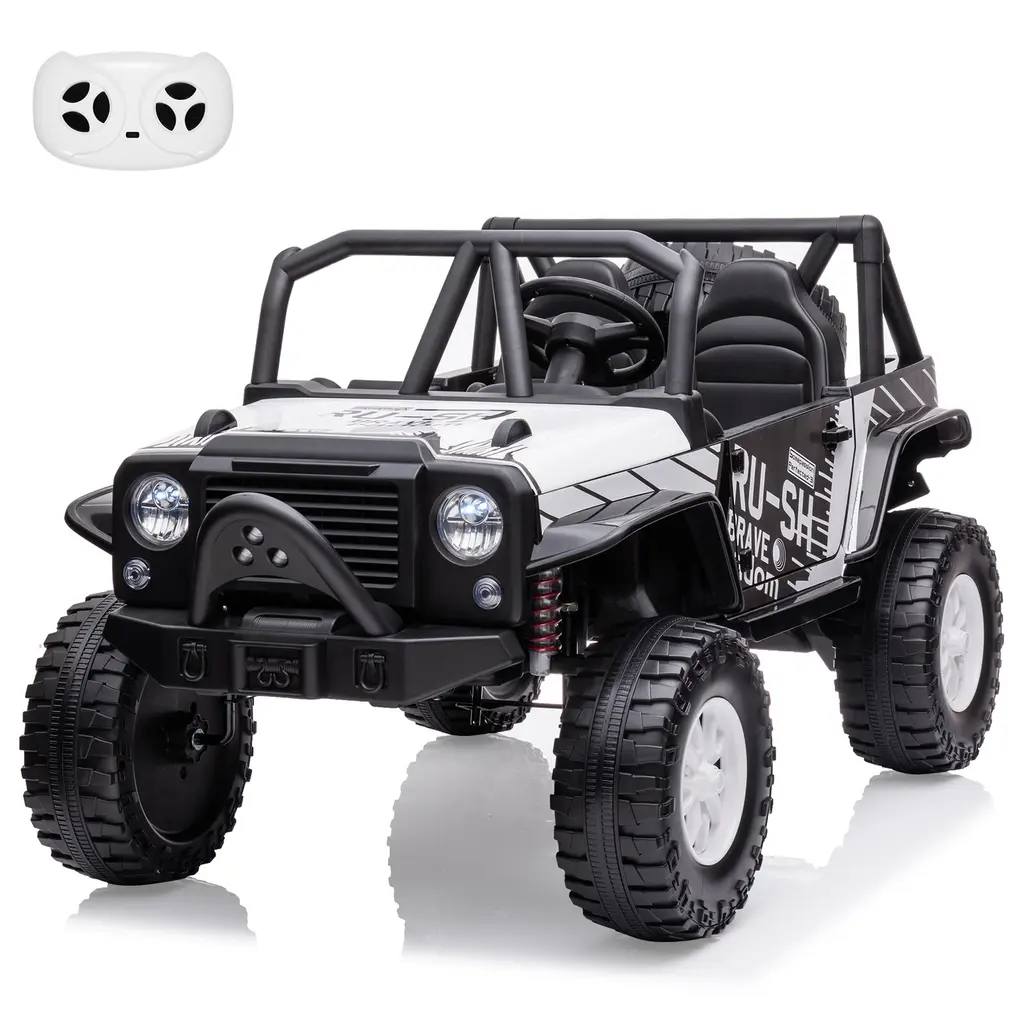 Powerful Performance: This ride-on truck car is powered by a 24V rechargeable battery and features two robust motors, providing high-performance driving capabilities. The spring suspension system ensures a smooth and comfortable ride over rough terrains, creating an authentic driving experience for kids. Additionally, a spare tire is included for easy replacement if needed. Safety and Durability Assurance: Constructed from high-quality materials that meet child safety standards, this ride-on car has successfully passed rigorous CPSIA, CPC, and ASTM-F963 certifications. Thorough testing for stability and load capacity guarantees a safe and reliable playtime experience, allowing parents to feel confident in their children's safety while playing. Adjustable Speeds and LED Lights: The electric truck car offers multiple speed settings, enabling kids to choose a pace that matches their driving skills. Vibrant LED lights not only enhance the fun factor but also contribute to the car's realistic design, making every ride more exciting and engaging for young drivers. User-Controlled Driving Modes: Designed for versatility, this ride-on vehicle allows children to drive independently using the foot pedal for acceleration and the steering wheel for navigation. For added safety and supervision, parents can take control with the 2.4G remote, which provides forward, reverse, and park controls, ensuring peace of mind during outdoor adventures. Perfect Gift for Kids: With overall dimensions of 54.4" x 29.1" x 27.6" and a maximum load capacity of 110 lbs, this ride-on 2-seater truck car offers spacious and comfortable seating for children. Its realistic design and impressive features make it an ideal gift for young adventurers, promoting imaginative play and outdoor exploration.