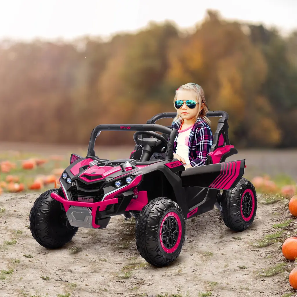 Description:This kids' electric car is a true wonder for children aged 3-8 years. It offers an unforgettable riding experience with its advanced features. The 24V 7AH battery-powered design ensures long-lasting playtime. The four shock absorbers provide a smooth and comfortable ride, even on uneven terrains. The music horn adds to the excitement, allowing kids to have fun while driving. The LED lights not only enhance the look but also make rides safe in low-light conditions. The two-seater design allows for sharing the joy with friends. It's a perfect toy to inspire imagination and outdoor adventures.