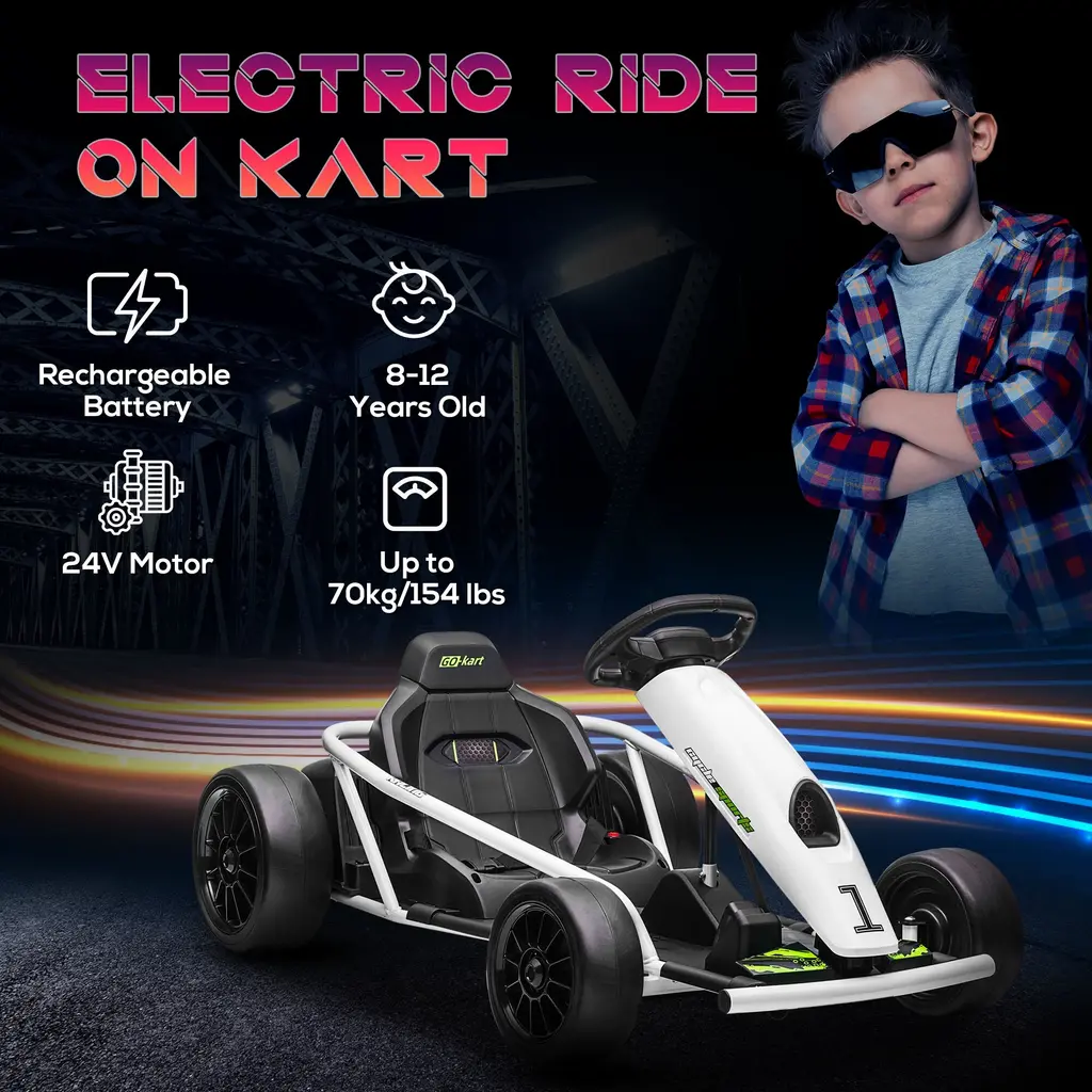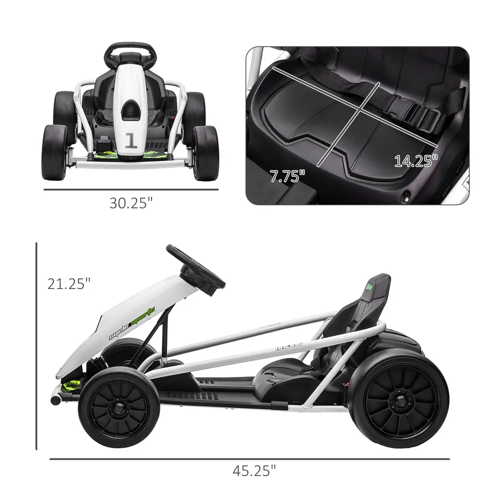 24v Electric Go-Kart For Kids, 8.1 Mph Drifting Car With Music, Horn & Safety Belt, Ages 8-12 - White