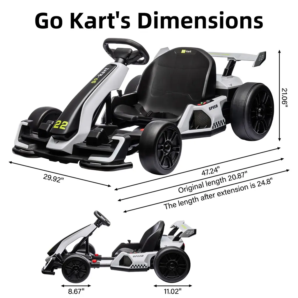 24v Electric Go Kart For Kids, Powerful Drift Kart With 2 * 150w Motors - White