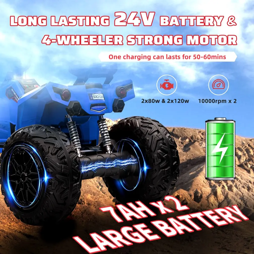 24v Kids Atv Ride On Car 4Wd Quad Electric Vehicle, 2 Seater, 4X200w - Blue
