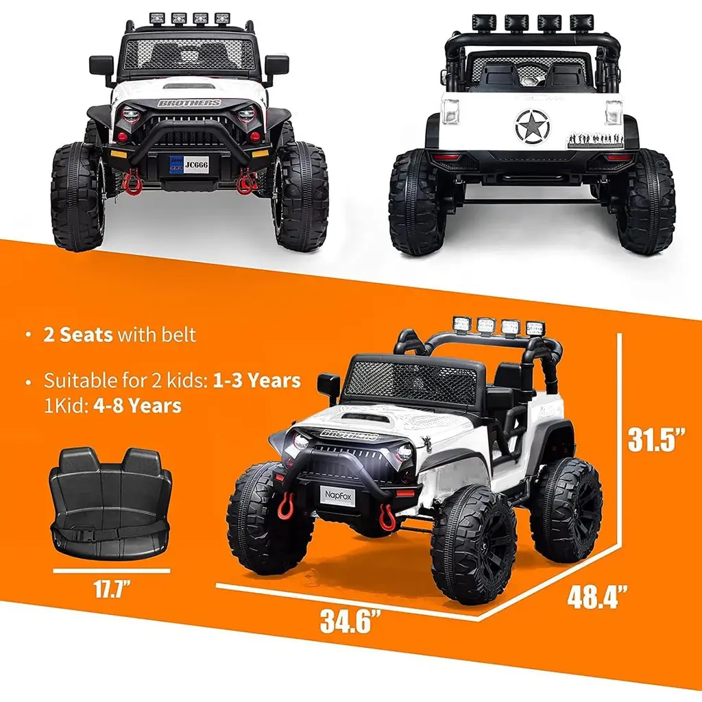 Product Overview:Bring the adventure to life with this 24V Kids Ride-On Truck. Designed with a 2-seater layout, spring suspension, and an easy-to-use remote control, this ride-on car is perfect for children aged 5 to 8 years. Offering up to 3 adjustable speeds, bright LED headlights, and a built-in music player, this vehicle provides an exciting and safe driving experience for your little ones.Product Features:Specifications:Suitable Scenarios:Perfect for backyards, driveways, and parks, this ride-on truck offers endless fun and excitement for kids, whether driving independently or guided by parents.Notes: