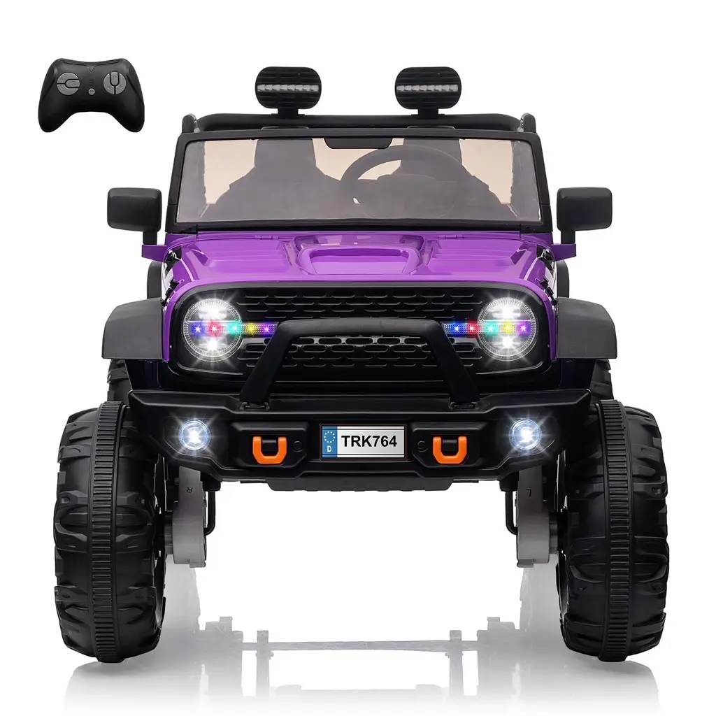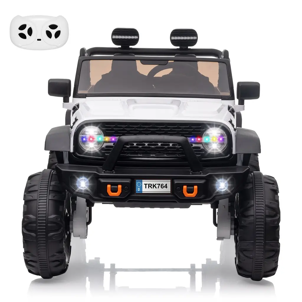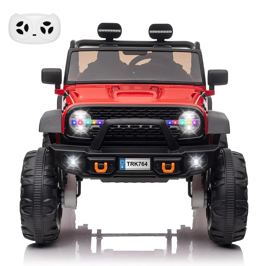 🚗Build-in Fun--The ride-on vehicle is already assembled with MP3, USB port, and bright LED Headlights+Taillight to provide much more fun for the child. The tail equipped with a shovel will bring more fun for kids. Play Time: 1.5-2.5 Hours after 8-12 hours charging.🚗Large 19.7" Seat Wide--Overall size: 47.6"*33"*32.3"(L x W x H). Seat Width: 19.7". Max Load:50KG(110LB). The large Two-Seat design can easily load 2 kids(under 4 years) or one 3-8 years kids to drive. 2 seats with 2 single safety belts for 1 or 2 Kids.🚗Manual & Parental Control: The parent can control the car by remote control to enjoy a happy time with the child. The child also can operate the foot pedal to control ideal speeds. Each wheel has an independent bearing to make steering smoother!🚗4WD Strong Motors: The ride-on truck equipped 24V 7A battery and 4*45W powerful motors, can better reflect off-road performance, adapt to various terrains, and provide continuous power in any condition! The slope of 20° can be easily passed.🚗Two Packages Delivered: Due to logistics restrictions, the ride-on car will be delivered in two packages! Please be patient to wait for both of them. After receiving the two boxes, please install the truck according to the installation video and user manual.