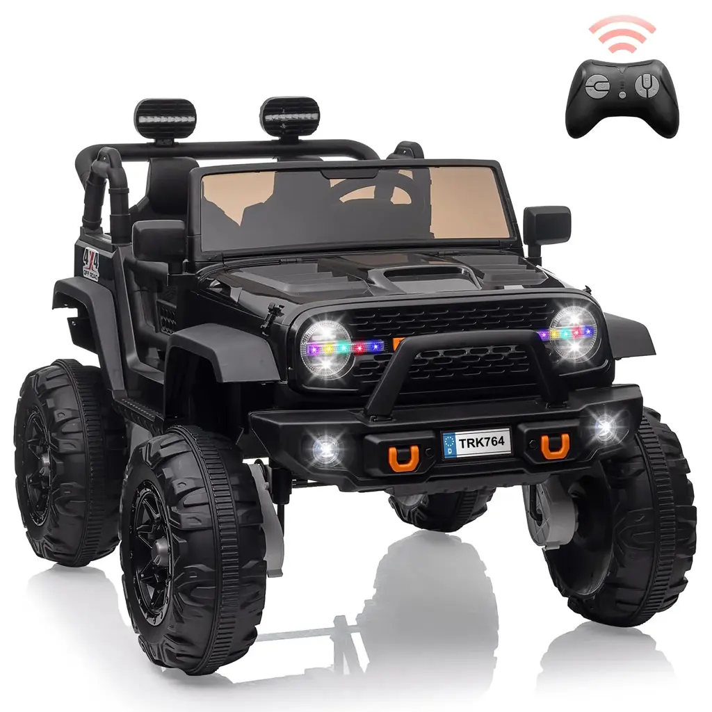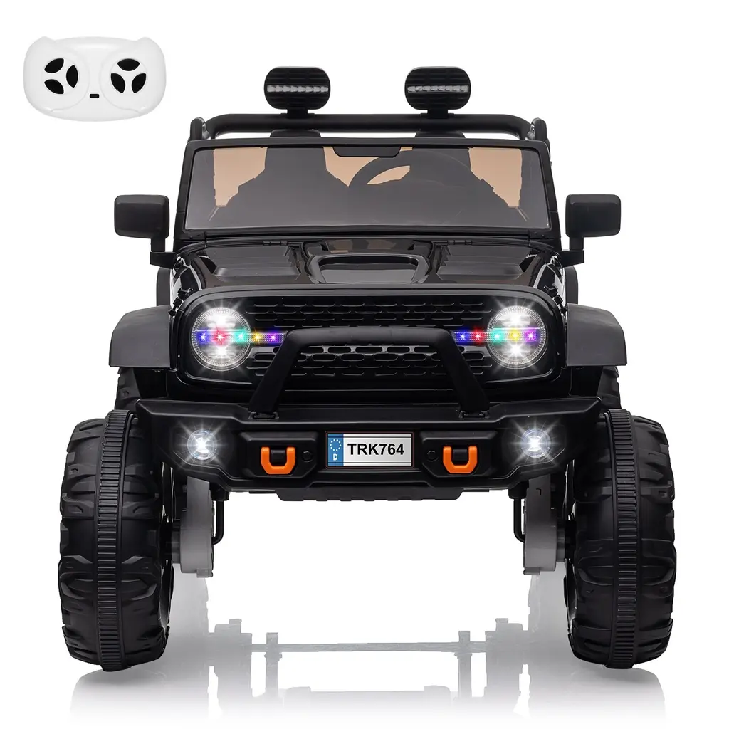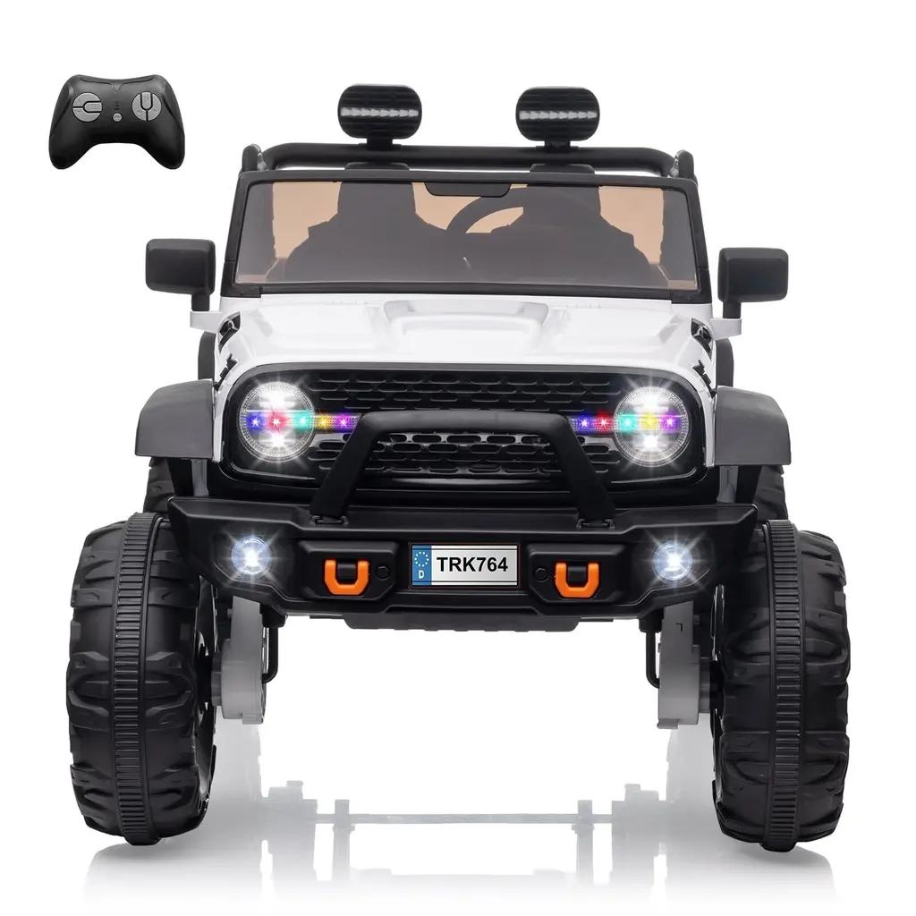🚗Build-in Fun--The ride-on vehicle is already assembled with MP3, USB port, and bright LED Headlights+Taillight to provide much more fun for the child. The tail equipped with a shovel will bring more fun for kids. Play Time: 1.5-2.5 Hours after 8-12 hours charging.🚗Large 19.7" Seat Wide--Overall size: 47.6"*33"*32.3"(L x W x H). Seat Width: 19.7". Max Load:50KG(110LB). The large Two-Seat design can easily load 2 kids(under 4 years) or one 3-8 years kids to drive. 2 seats with 2 single safety belts for 1 or 2 Kids.🚗Manual & Parental Control: The parent can control the car by remote control to enjoy a happy time with the child. The child also can operate the foot pedal to control ideal speeds. Each wheel has an independent bearing to make steering smoother!🚗4WD Strong Motors: The ride-on truck equipped 24V 7A battery and 4*45W powerful motors, can better reflect off-road performance, adapt to various terrains, and provide continuous power in any condition! The slope of 20° can be easily passed.🚗Two Packages Delivered: Due to logistics restrictions, the ride-on car will be delivered in two packages! Please be patient to wait for both of them. After receiving the two boxes, please install the truck according to the installation video and user manual.