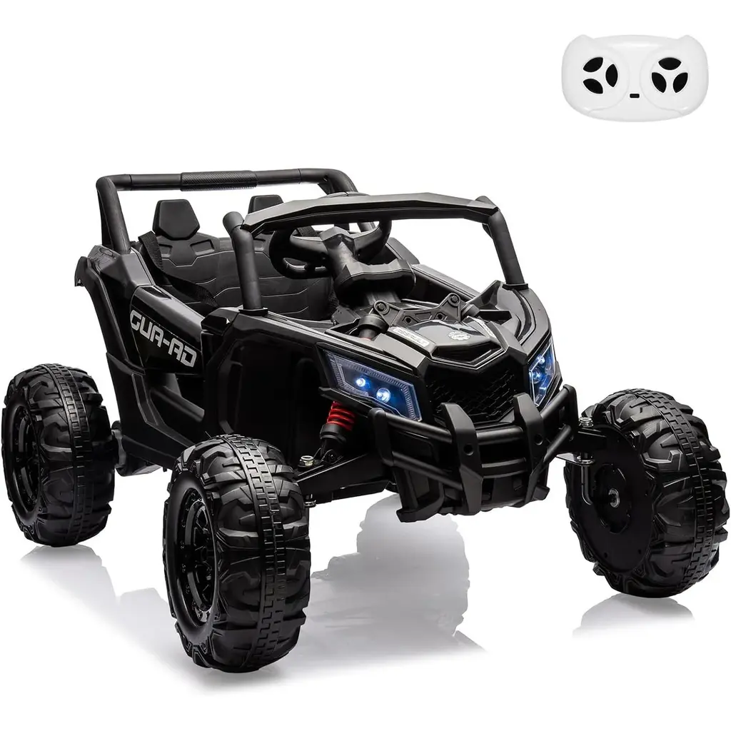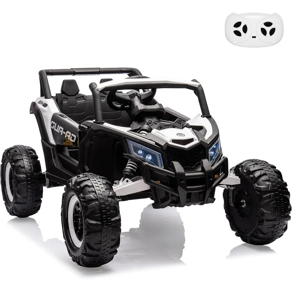 Stylish Design: This ride-on UTV car boasts a sleek and realistic look, featuring LED lights, wear-resistant EVA wheels, an MP3 player, and a flash drive port. The fully operational doors enhance the authenticity of the driving experience. Powerful Performance: Powered by a 24V 7AH rechargeable battery, this electric UTV car provides a comfortable driving experience on various terrains, including grass, gravel, and gentle inclines, ensuring both fun and safety. Dual Driving Modes: Children can independently operate the car using the foot pedal for acceleration and the steering wheel for navigation. Parents can also take control with the 2.4G remote, which includes forward, reverse, park controls, and steering functions. Safe & Durable: Constructed from robust materials that comply with all child safety standards, this car has passed CPSIA, CPC, and ASTM-F963 certifications. It has been rigorously tested for stability, asphyxiation, load capacity, and shear strength to guarantee reliability and safety. Perfect Gift for Children: With overall dimensions of 40.9" x 28.7" x 24" and a maximum load capacity of 66lbs, this ride-on UTV car features a spacious seat for added comfort, making it an ideal gift for children aged 3 and above to foster their independence and coordination during play.