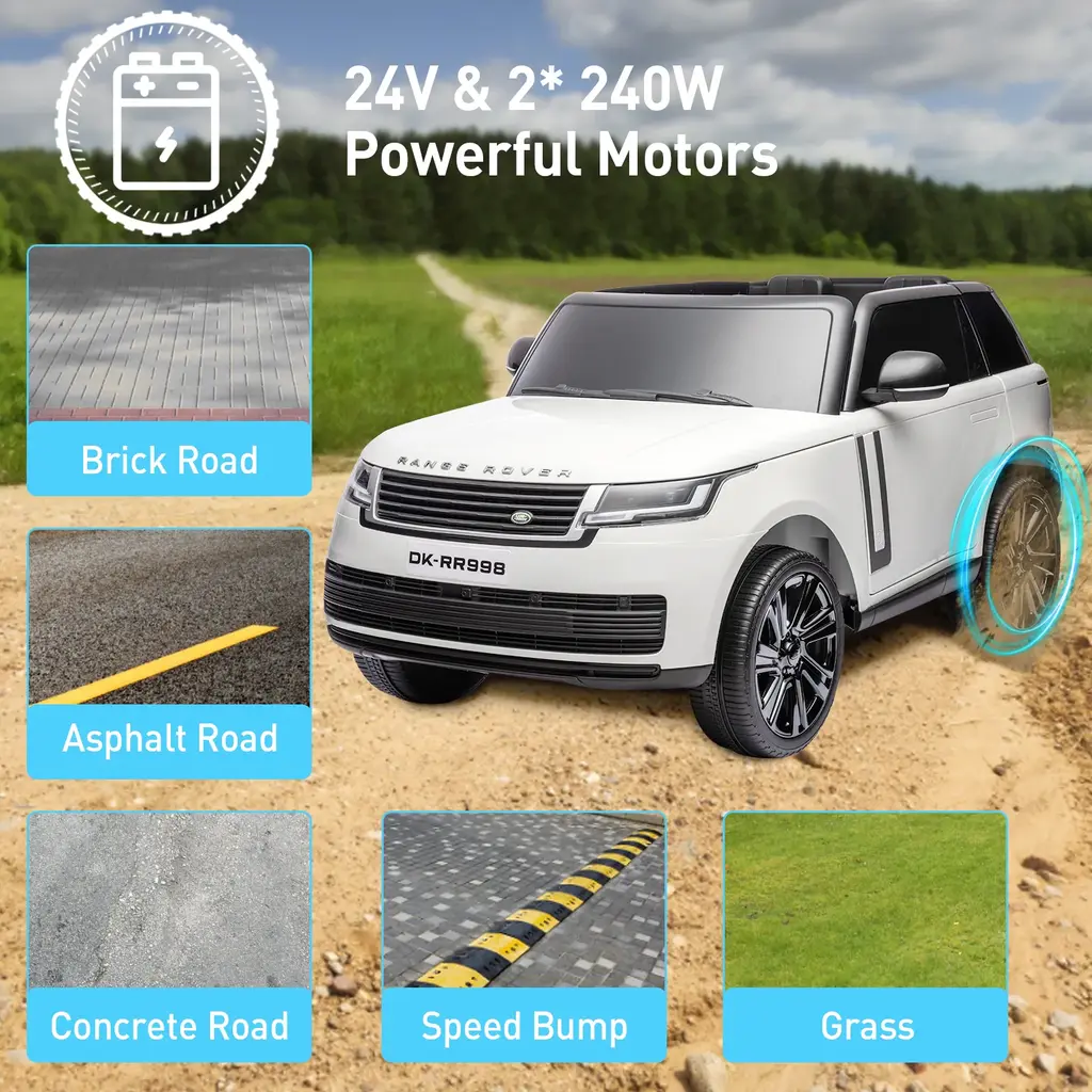 24v Licensed Land Rover Ride On Car, 2-Seater Electric Car W/parent Remote Control - White
