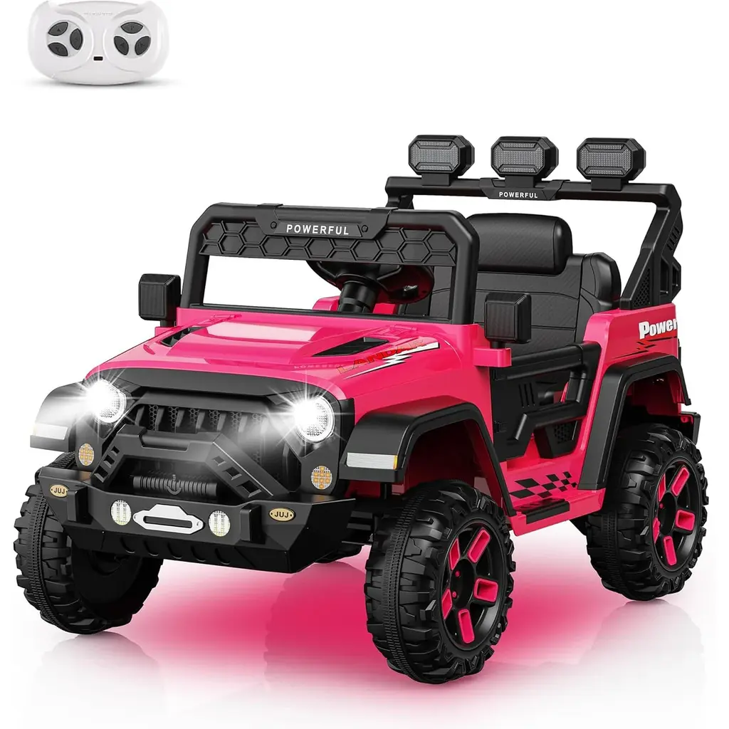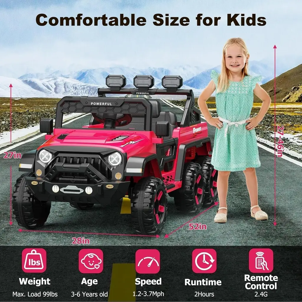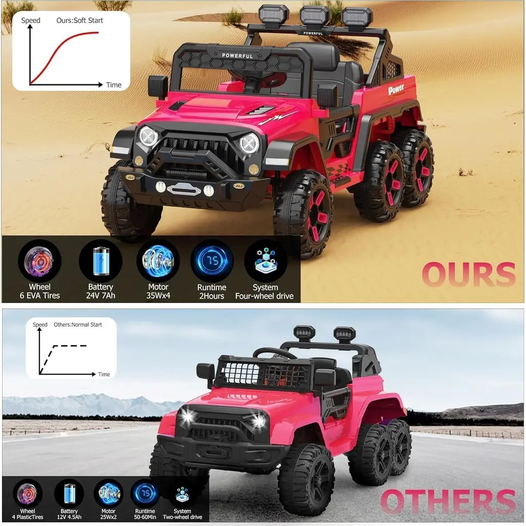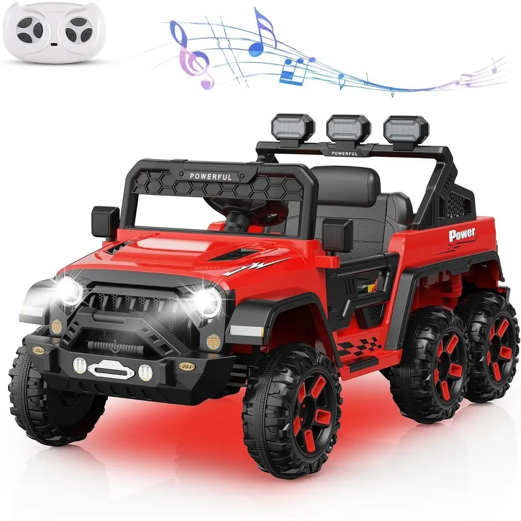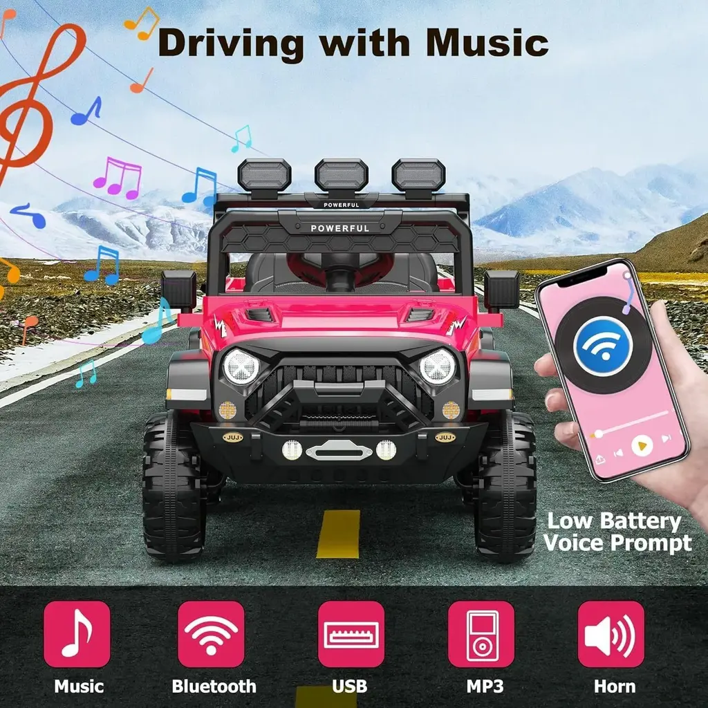 DUAL DRIVING MODES: Experience the thrill of driving with two modes—self-driving using non-slip foot pedals and steering, or parental control via a 2.4G remote for added safety. Perfect for kids aged 3+ REALISTIC SAFETY FEATURES: Designed with seat belts, a lockable door, and a slow start function to ensure a safe and comfortable ride. The 6 EVA wheels offer stability on all terrains, making it a durable stroller for adventurous kids INTERACTIVE MUSIC FUNCTION: Keep your little ones entertained with built-in music and a colorful console. Connect via USB or Bluetooth to play their favorite tunes or stories, enhancing their riding experience ALL-TERRAIN: This 24V battery-powered stroller features a 4WD switchable system and six sturdy wheels, ensuring a comfortable ride on grass, asphalt, or cobblestone. Ideal for a positive energy stroller experience STYLISH AND GIFT-READY: With its Jeep style and leather seat, this electric stroller is not only a comfortable ride but also a perfect gift for birthdays or Christmas, combining style and fun in one package