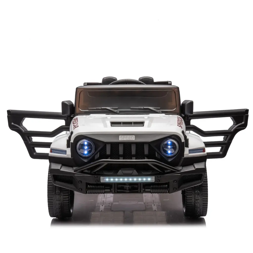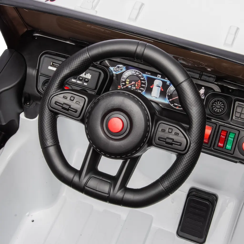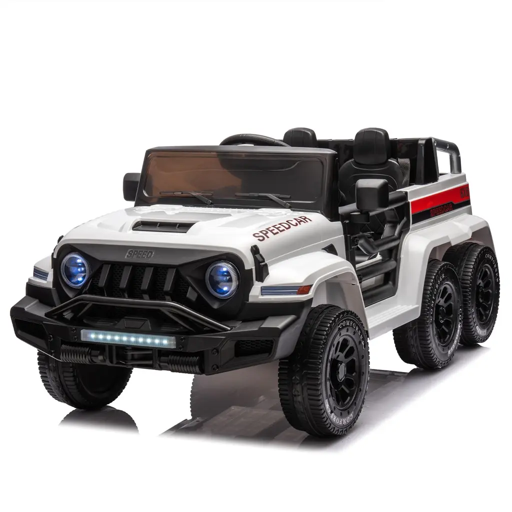 DescriptionRemote Control Feature Music and Light System: Multimedia functionality allowing the child to enjoy music and vibrant lights. Five-Point Safety Harness: Ensures the child's safety during rides. High/Low Speed Mode: Adjustable speed settings suitable for various occasions. Convenient Carry Handle Design: Easy to transport, even when the battery is depleted. Parental Rear Seat: Allows parents to accompany the child during rides. Pickup Truck Styling: Stylish appearance combining storage and seating functionality. Multi-functional Trunk Space: Used for storage or seating, enhancing practicality. Four-Motor Power: Ensures stability, making the operation smoother. Six-Wheel Design: Unique appearance that captures attention. Rocking Chair Mode: Offers back-and-forth rocking, adding an element of playful entertainment. Features: BATTERY:24v MOTOR:#390*4 Maxmum Load: 66.14 lbs Car speed: 3-5km/h Applicable age: 3-6 years old WORK HOUR:90MINS Test standards:ASTM,CPSIA,MSDS,CPC FUNCTION:Remote Control One-Key Start Independent Light Switch Forward/Reverse Music and Lights Seat Belt High/Low Speed Five-Point Safety Belt Carrying Handle for easy transportation when out of power Accommodates a parent to sit in the rear Pickup truck-style design Rear space for both storage and seating Powered by four motors Aesthetic six-wheel design Rocking chair mode for back-and-forth swinging