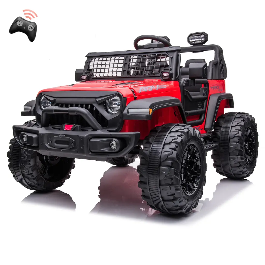24v Ride On Car Truck With Remote Control, 2 Seater Kids Electric Car, Spring Suspension, 9Ah Battery Powered, 3 Speeds - Red Black