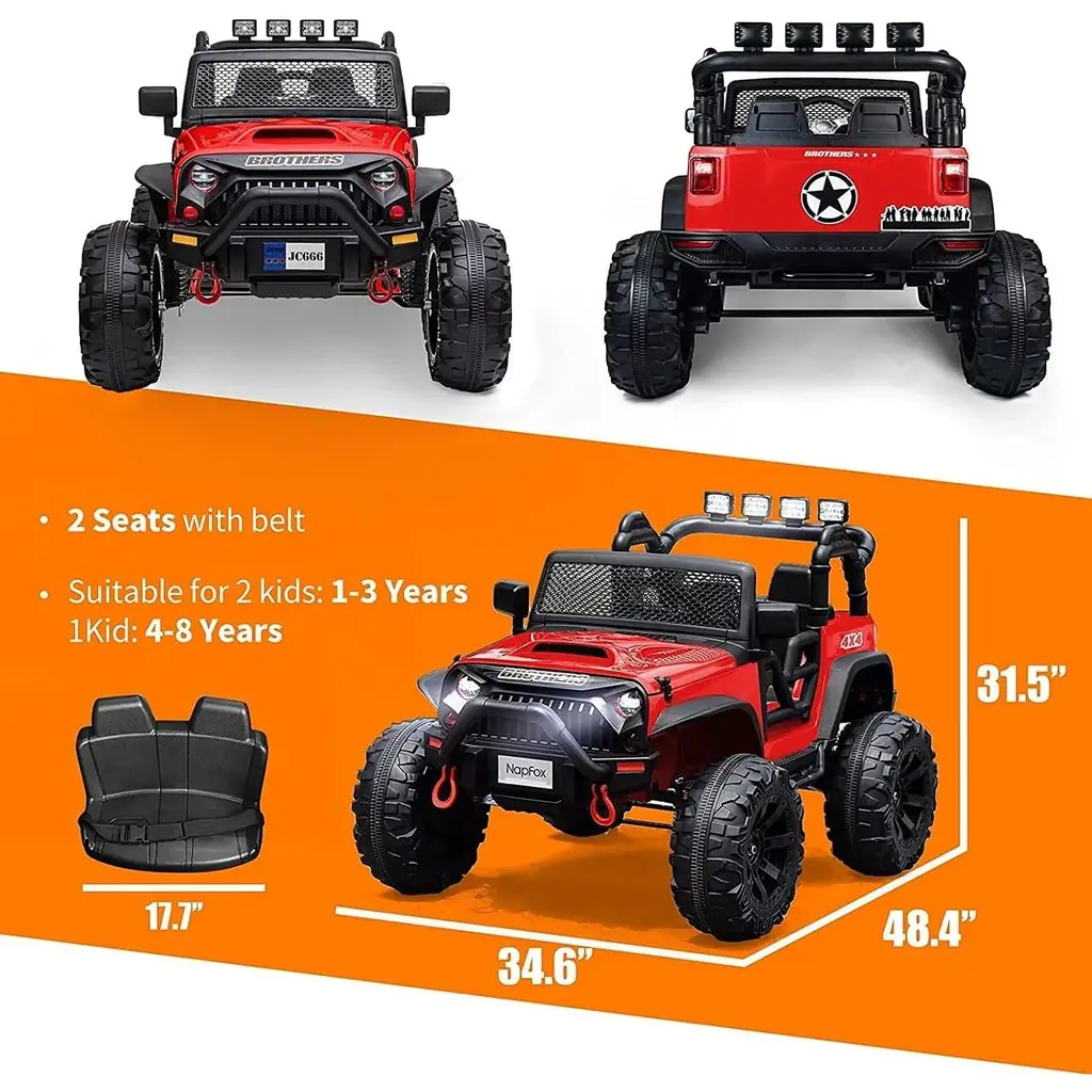 Warm tips: Product after-sales guide 🚀Thank you for purchasing our products!Please do not return the product in case of problems. Please take a photo and send it to us, we will quickly process and provide a reasonable solution. Thank you for your cooperation! 🙏 Overall Dimensions: 48.4"*34.6"*31.5"(L x W x H), this electric vehicle is equipped with 12V battery, charge time: 8-12hrs. suitable for 37-96 months children, max weight capacity is 100 lbs. Family members can enjoy the happiness by the truck. The parent can control the truck to enjoy the happiness time with child. The child also can operate by themself by foot pedal to control ideal speeds. There are 2 speeds for manual, 3 speed from 1.8-3.7 mph to operate by remote control. This kids ride on car certified by ASTM F963 CPSIA CPC, with slow start function,parent remote control priority, adjustable seat belt, lockable doors, spring suspension wheels, all these can make sure to prevent your child from falling off or other danger. The ride on vehicle equipped with MP3, USB port, AUX input, FM radio, bright LED headlights to provide much more funny for child. Bright LED headlights, control pedal, detachable trailer(Optional),realistic engine sound and horn, rechargeable battery with 2*40W motors,offer an authentic experience.