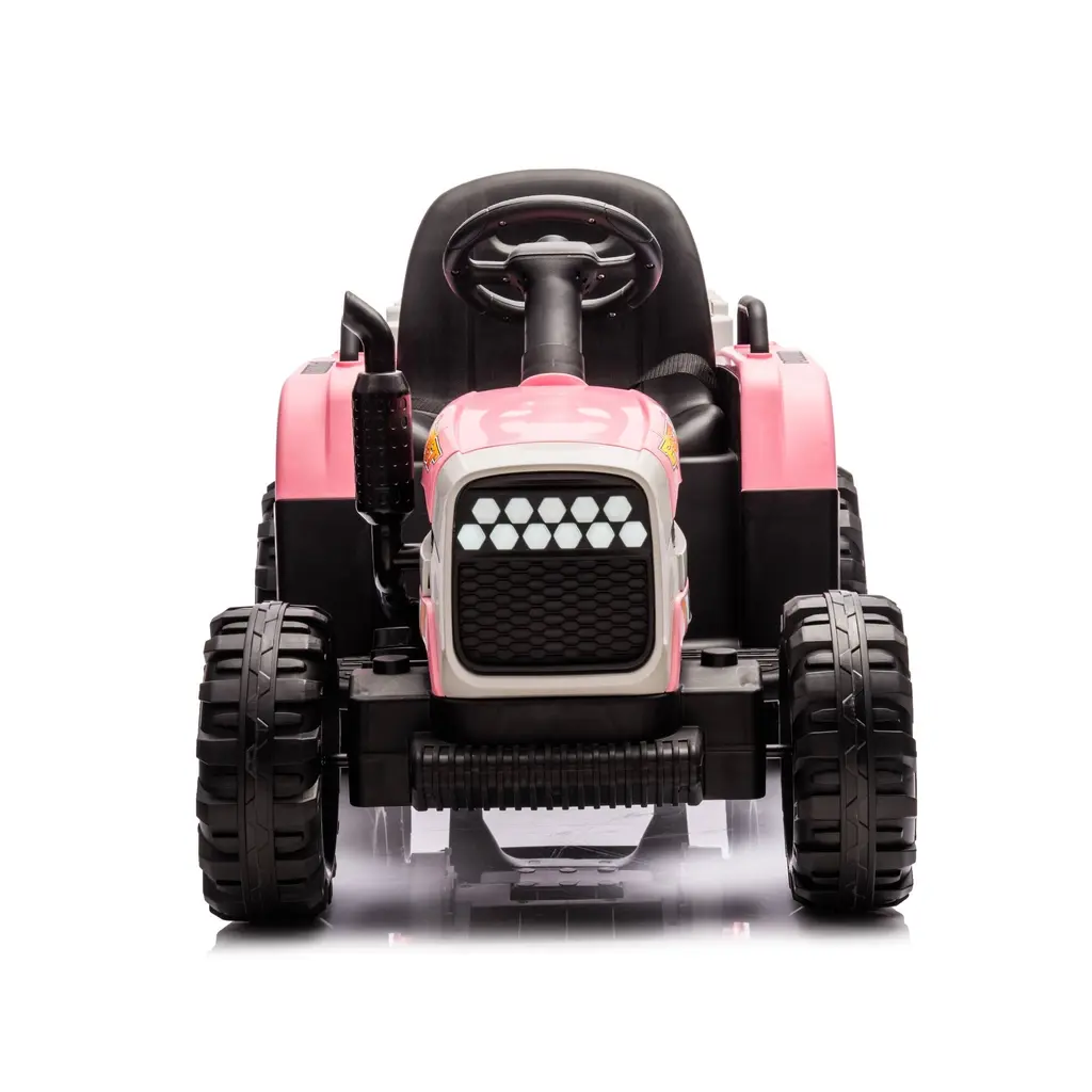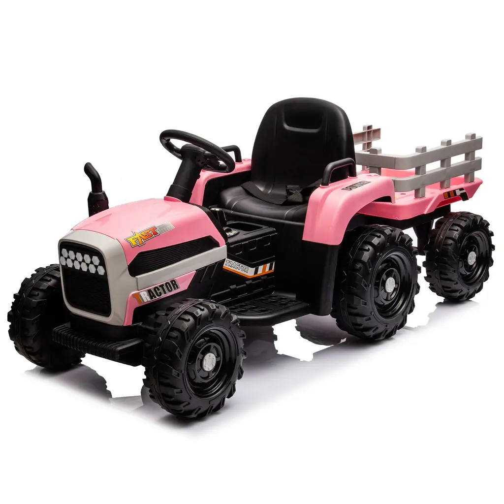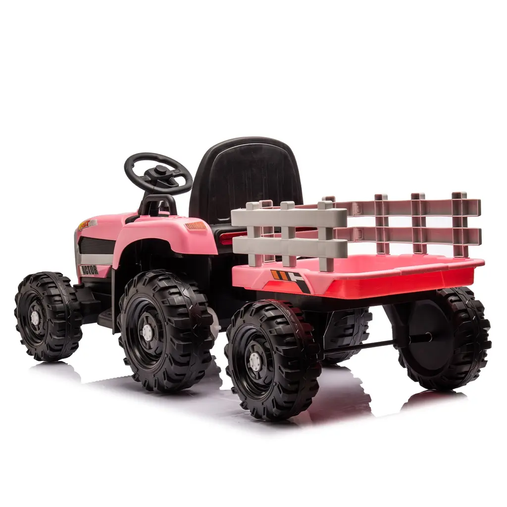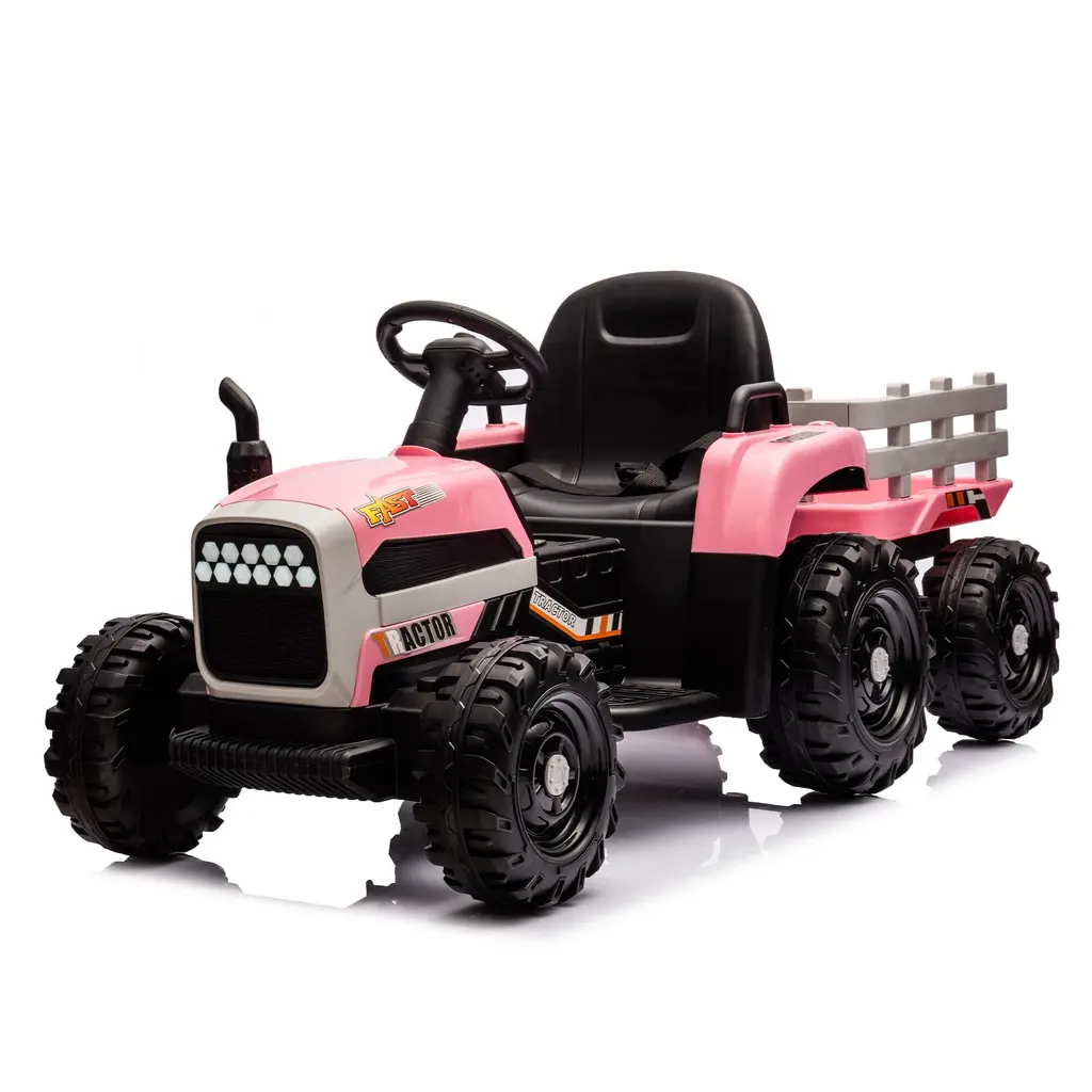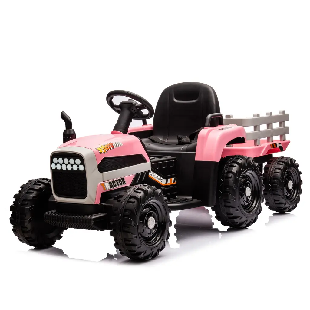 Product Overview:Let your child experience the fun of farm life with the 24V Battery-Powered Ride-On Tractor with Trailer. This realistic farm vehicle is designed to look like the real thing, with authentic detailing, dual 200W motors, and adjustable speeds of 1.86-4.97 MPH. It features two control modes—parental remote control and manual operation—so parents can keep the ride safe while kids enjoy an adventurous drive. Equipped with a rechargeable battery, LED lights, and built-in music, this ride-on tractor is perfect for kids aged 3-6 years.Product Features:Specifications:Suitable Scenarios:This ride-on tractor is ideal for outdoor play in backyards, parks, and gardens. Its durable design allows it to handle a variety of terrains, providing a safe and entertaining driving experience for young adventurers.Notes: