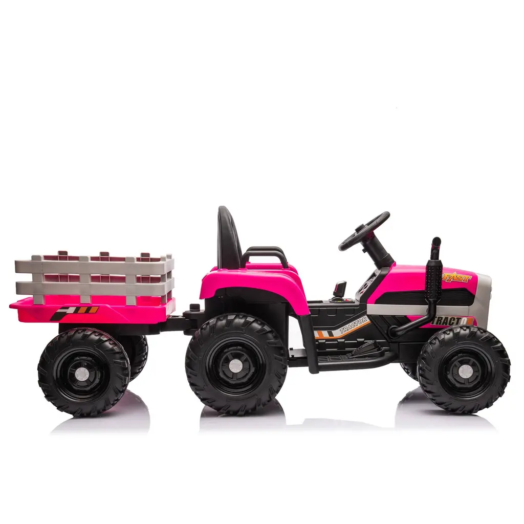 Product Overview:Let your child experience the fun of farm life with the 24V Battery-Powered Ride-On Tractor with Trailer. This realistic farm vehicle is designed to look like the real thing, with authentic detailing, dual 200W motors, and adjustable speeds of 1.86-4.97 MPH. It features two control modes—parental remote control and manual operation—so parents can keep the ride safe while kids enjoy an adventurous drive. Equipped with a rechargeable battery, LED lights, and built-in music, this ride-on tractor is perfect for kids aged 3-6 years.Product Features:Specifications:Suitable Scenarios:This ride-on tractor is ideal for outdoor play in backyards, parks, and gardens. Its durable design allows it to handle a variety of terrains, providing a safe and entertaining driving experience for young adventurers.Notes: